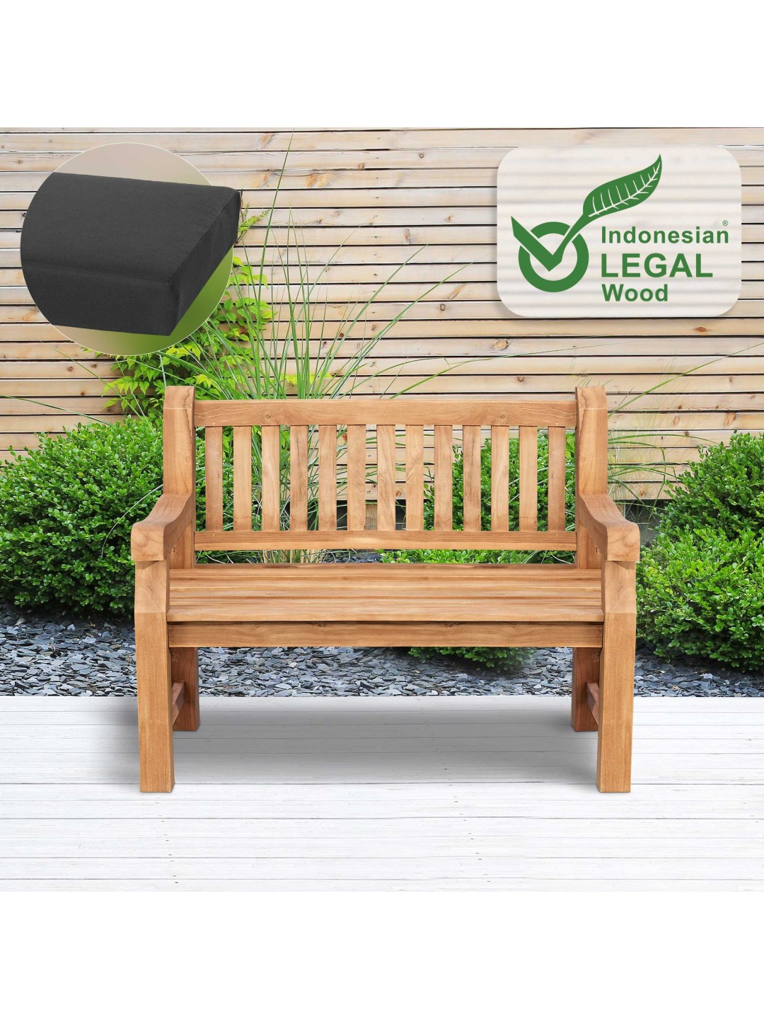 Teak bænk Jackson med sædehynde