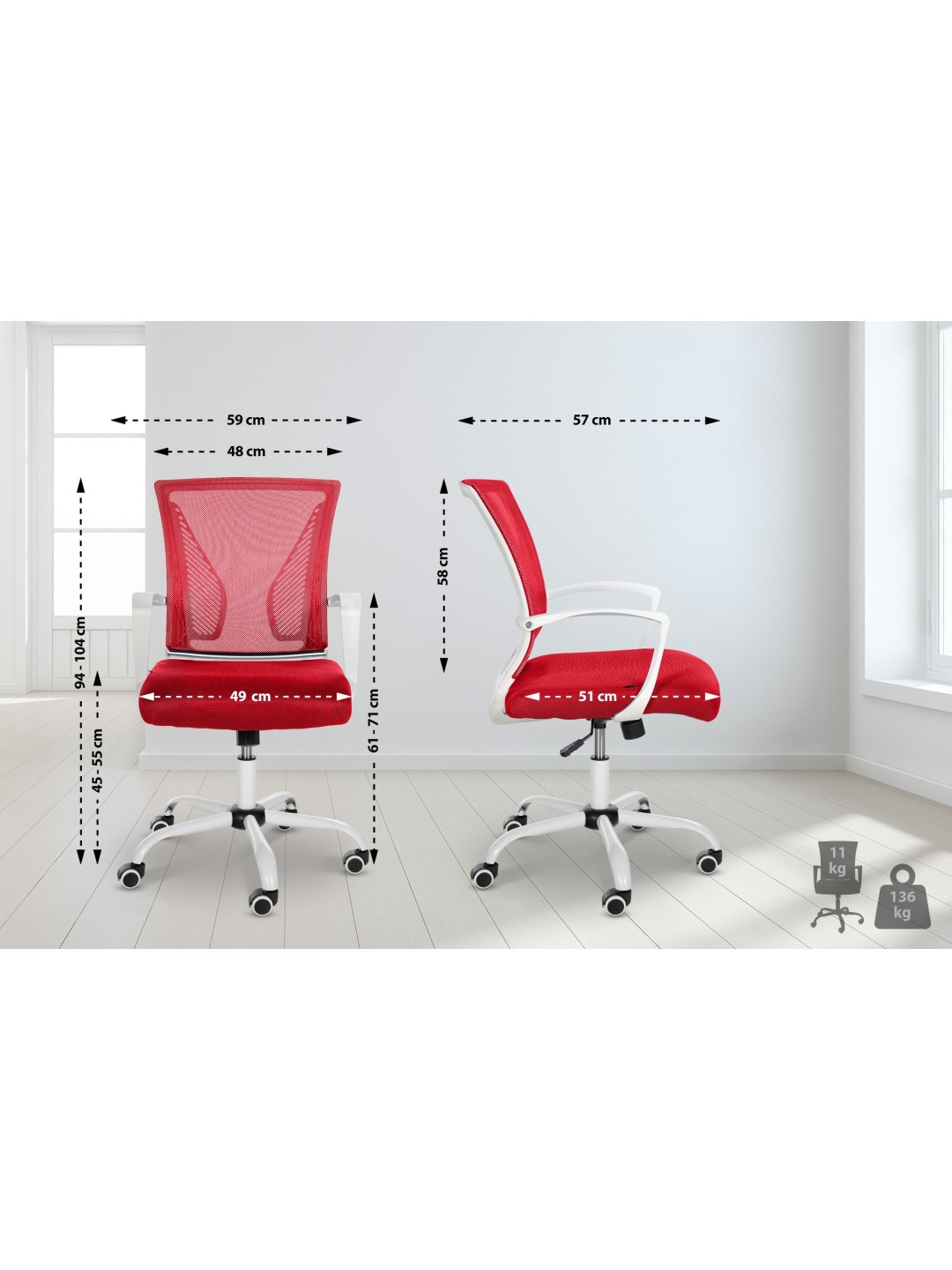 Denne kontorstol imponerer med sit moderne design og solide håndværk. Det plejevenlige meshbetræk ser ikke kun smukt ud, det er særligt åndbart. Dette giver dig mulighed for at sidde komfortabelt uden at svede. Sædehøjden kan justeres trinløst med håndtaget under sædet. Dette garanterer et højt niveau af komfort, mens du arbejder eller slapper af. Kontorstolen står sikkert på fem gummibelagte, glat kørende hjul. Lige meget om det er hårde eller tæppebelagte gulve – du vil altid kunne rulle let og løst hen over gulvet. Metalrammen fås i to farver.