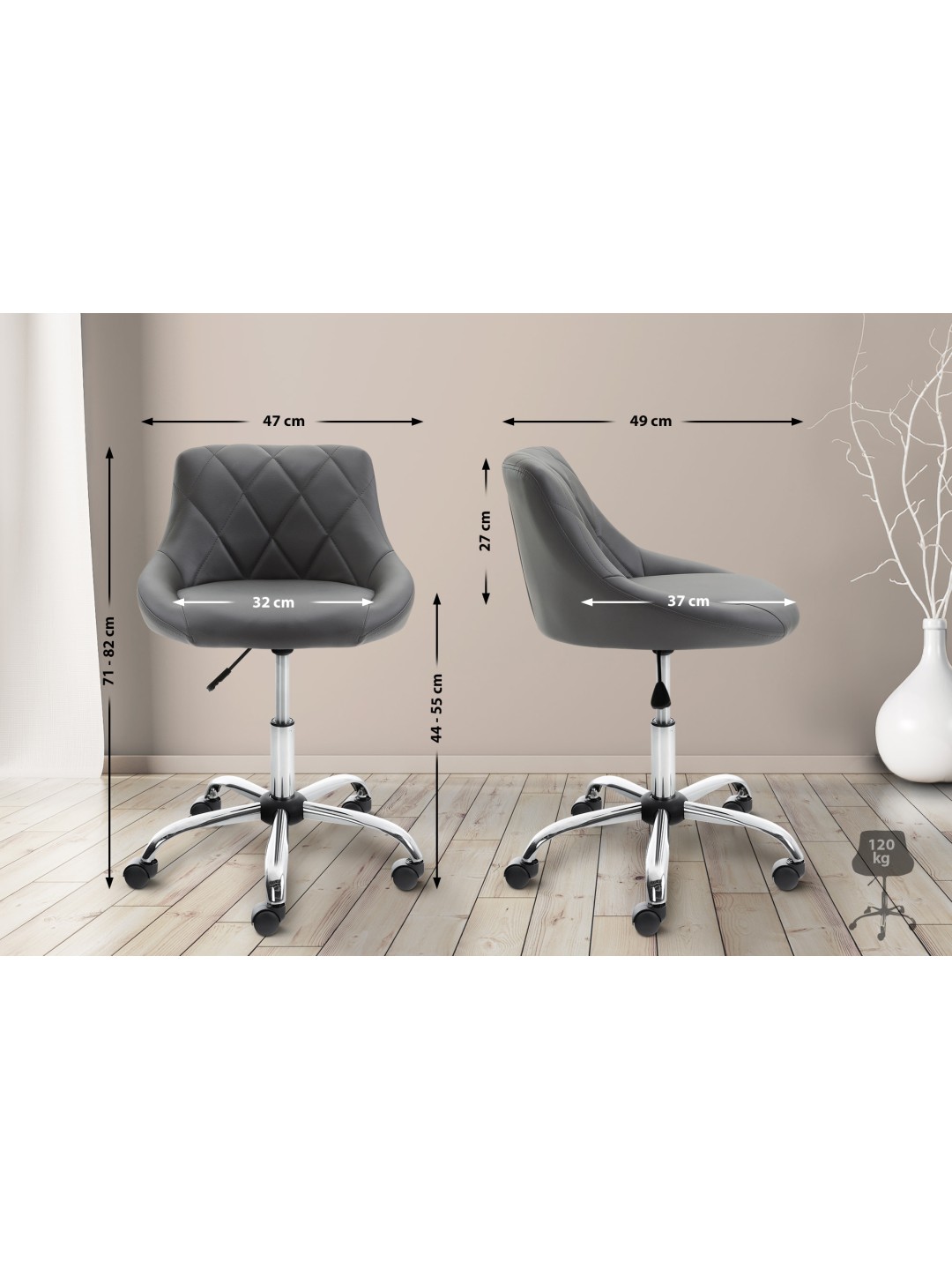 Arbejdskamlen er et behageligt sæde - ideel til lægekontorer, massage- og kosmetiksaloner. Det polstrede sæde fås med enten syntetisk læder eller stofbetræk og er særdeles behageligt polstret, ryglænet giver ekstra komfort. Drejestolen kan højdejusteres ved hjælp af en gaslift og kan drejes 360°. Den står sikkert på fem jævnt kørende hjul og en metalramme i krom-look. Lige meget om det er hårde eller tæppebelagte gulve – du kan altid rulle let og løst hen over gulvet. Enkelt, stilrent design og robuste materialer, der viser sig i hverdagen.