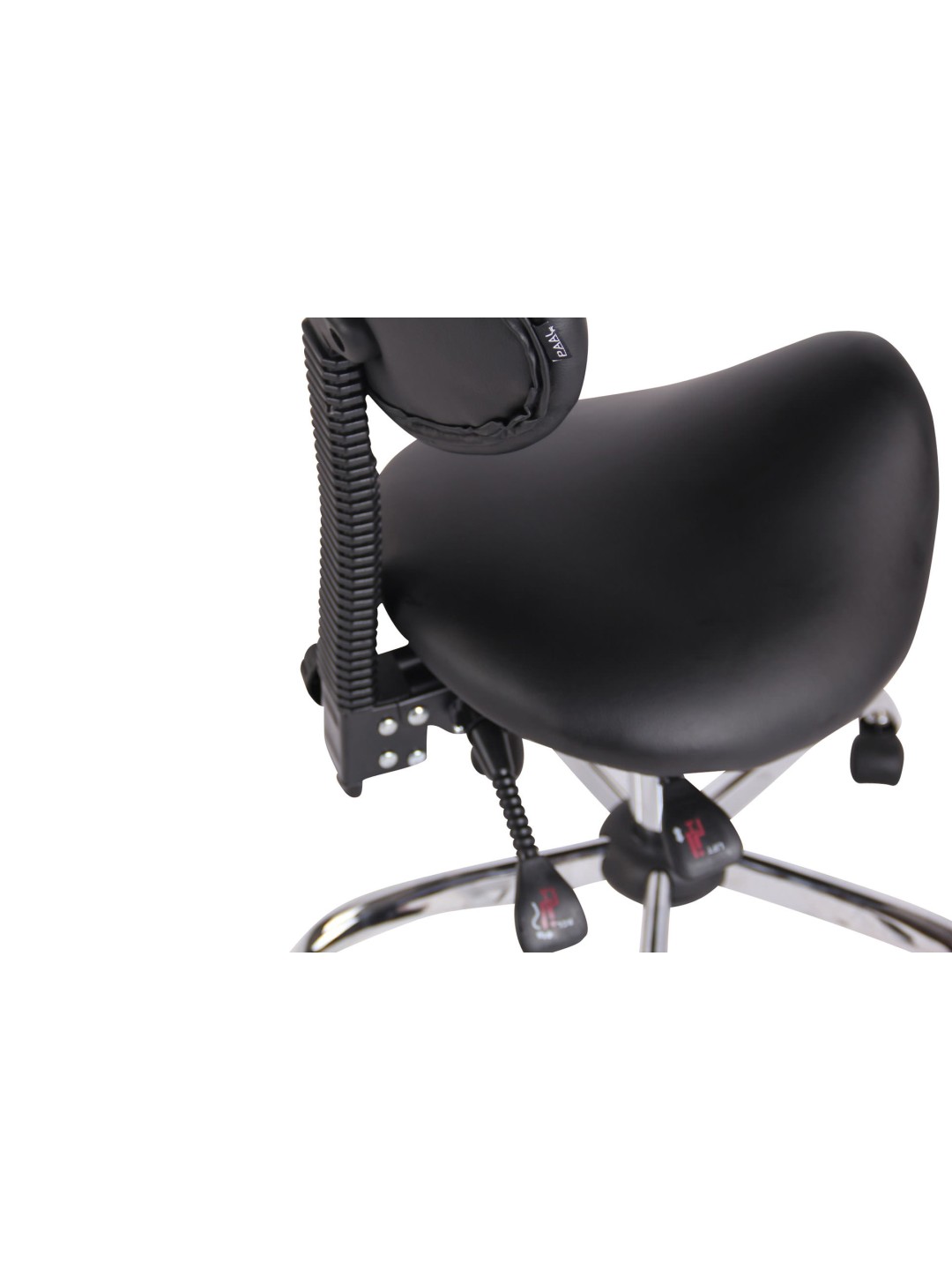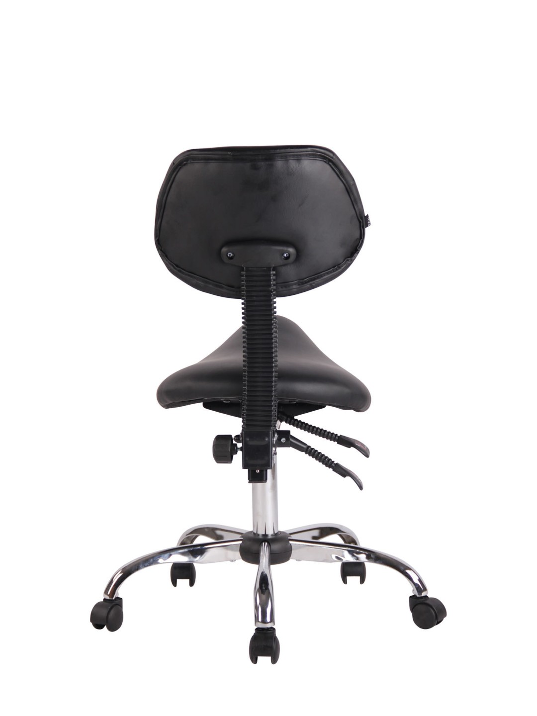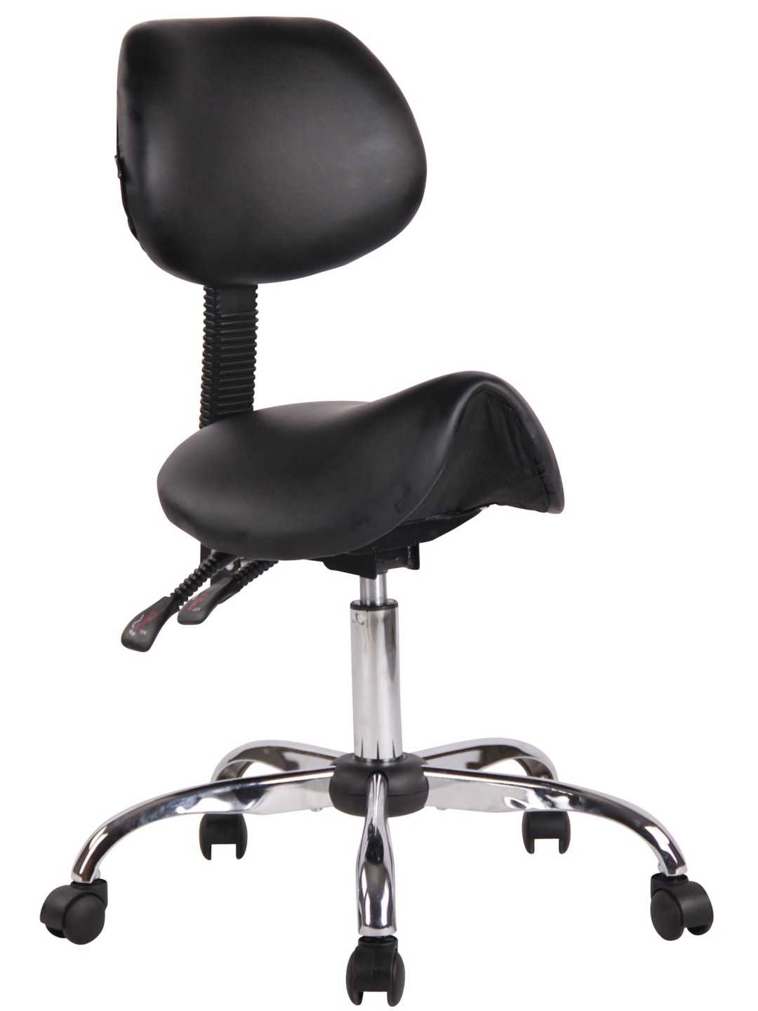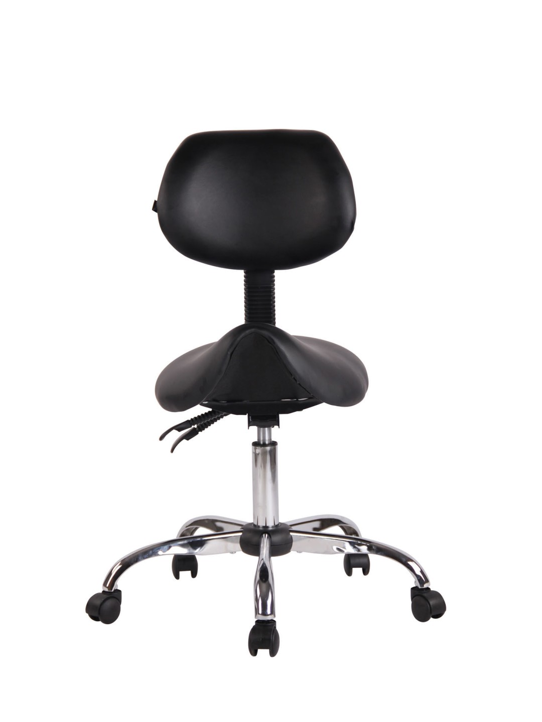 Stuttgart arbejdsskammel er et behageligt sæde - ideel til lægekontorer, massage- og kosmetiksaloner. Sadelsædet og ryglænet er beklædt med et plejevenligt kunstlæderbetræk og er særligt behageligt polstret. Ryglænet kan også vippes. Den står sikkert på fem jævnt kørende hjul og en metalramme i krom-look. Lige meget om det er hårde eller tæppebelagte gulve – du kan altid rulle let og løst hen over gulvet. Enkelt, stilrent design og robuste materialer, der beviser sig selv i hverdagen - et all-round anbefalet produkt.