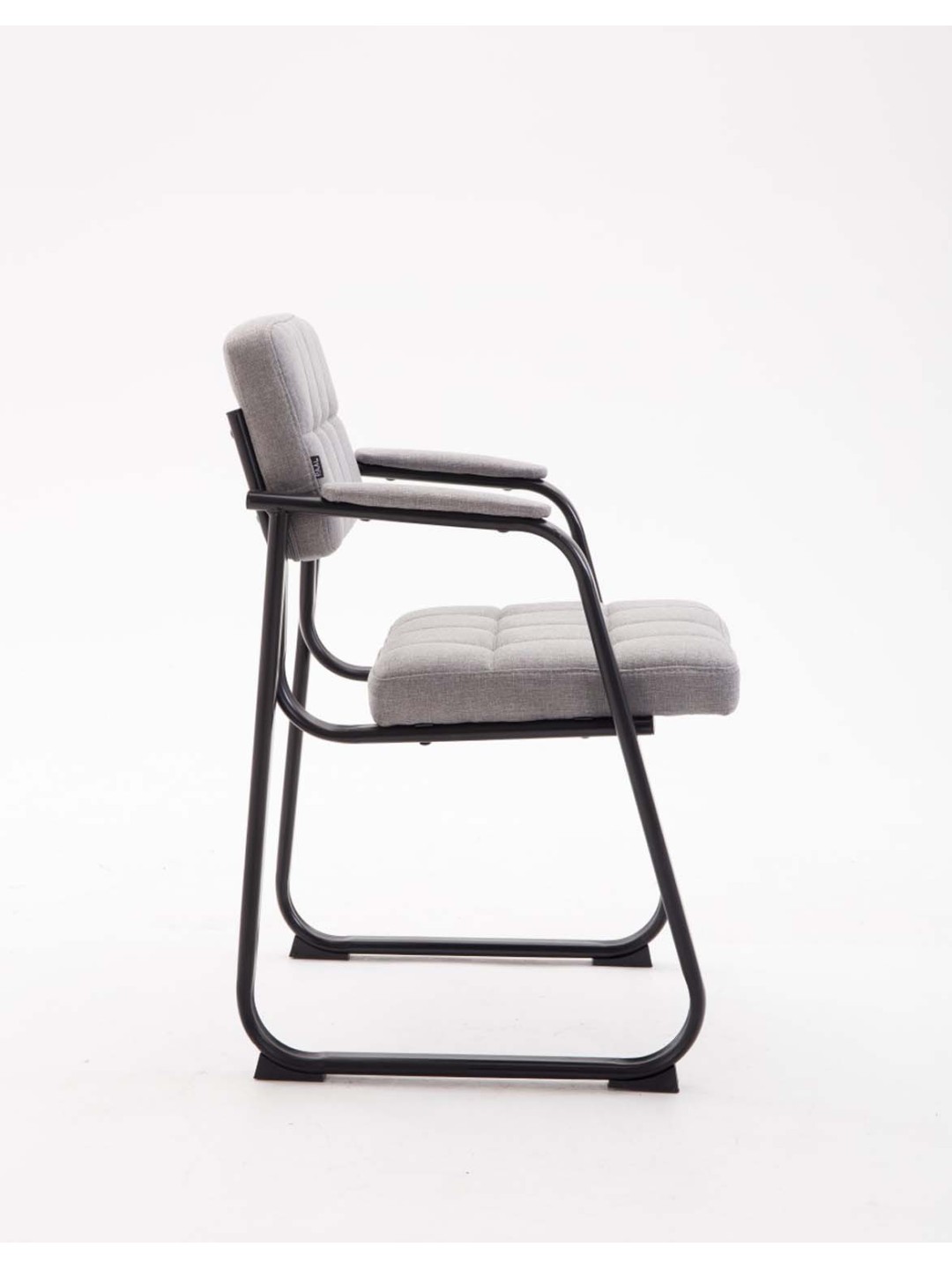 Denne besøgsstol giver ethvert rum et eksklusivt look. Den komfortable konferencestol imponerer ikke kun med sine fremragende siddeegenskaber, men også med sit usædvanlige design. Udseendet bestemmes af den quiltede polstring med stofbetræk og den buede ramme. Polstringen på sæde og ryg betyder, at du kan opholde dig komfortabelt i timevis. Denne besøgsstol står på et robust stel af sortmalet metal, som er udstyret med gulvbeskyttere. Denne lænestol passer harmonisk ind i ethvert interiør - den er ideel til venteværelser, messer og andre arrangementer.