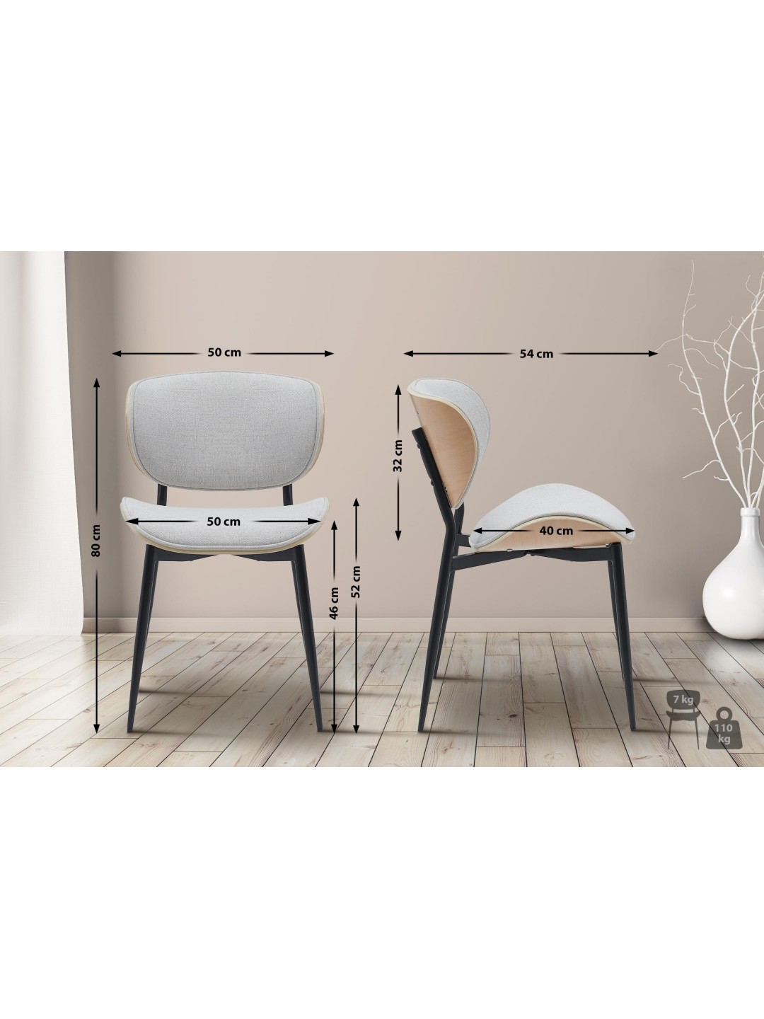 Besøgsstol Enid stof, natur/creme