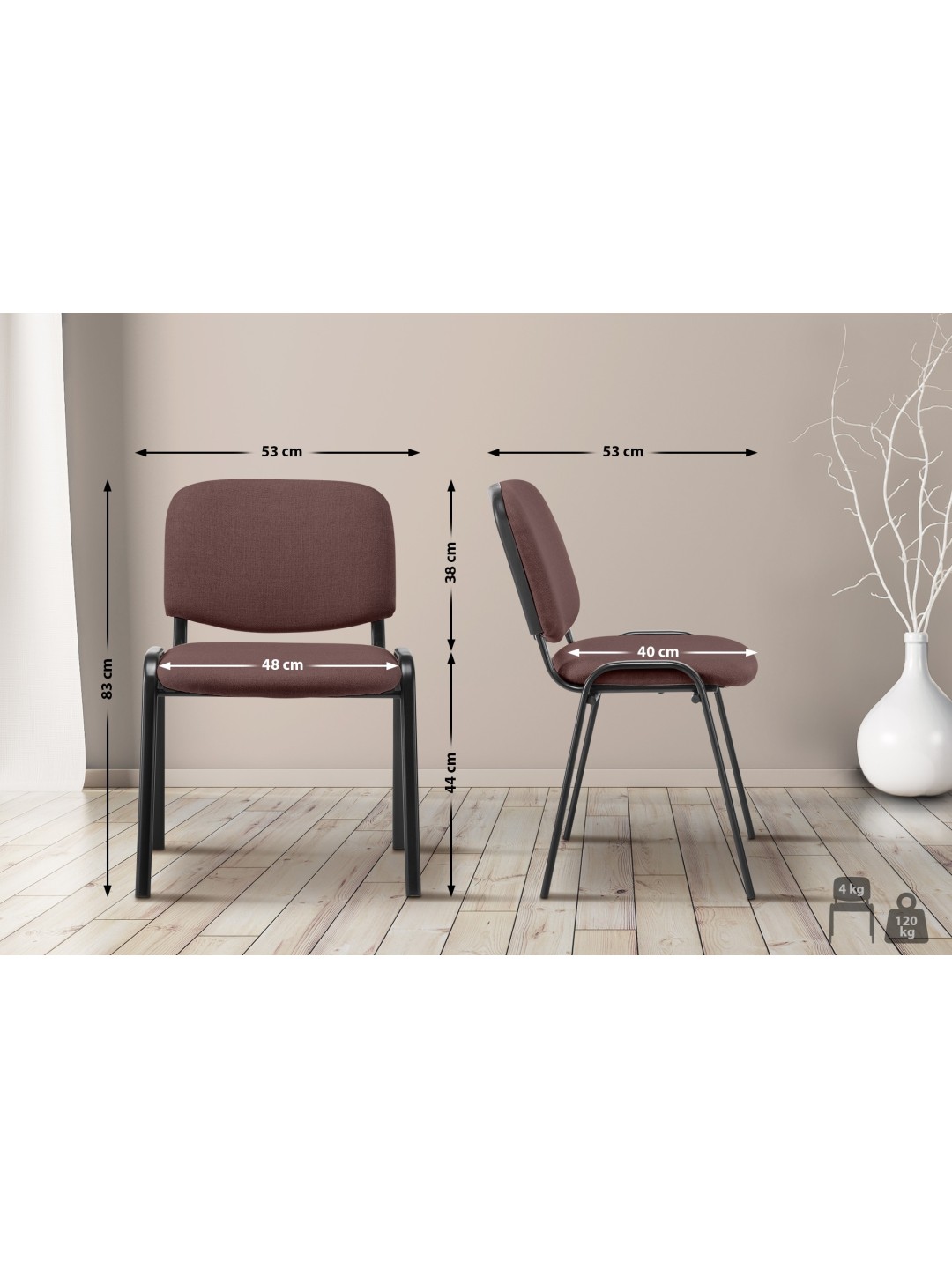 Det polstrede sæde og ryglæn, beklædt med slidstærkt stof, giver en langvarig behagelig siddeoplevelse. Takket være det sorte firbenede metalstel er stolen stabil og stabil - med en maksimal bæreevne på 120 kg. Op til fire stole kan hver stables, så de kan opbevares og bruges fleksibelt og pladsbesparende. Gulvbeskyttere af plast forhindrer, at følsomme gulve beskadiges.