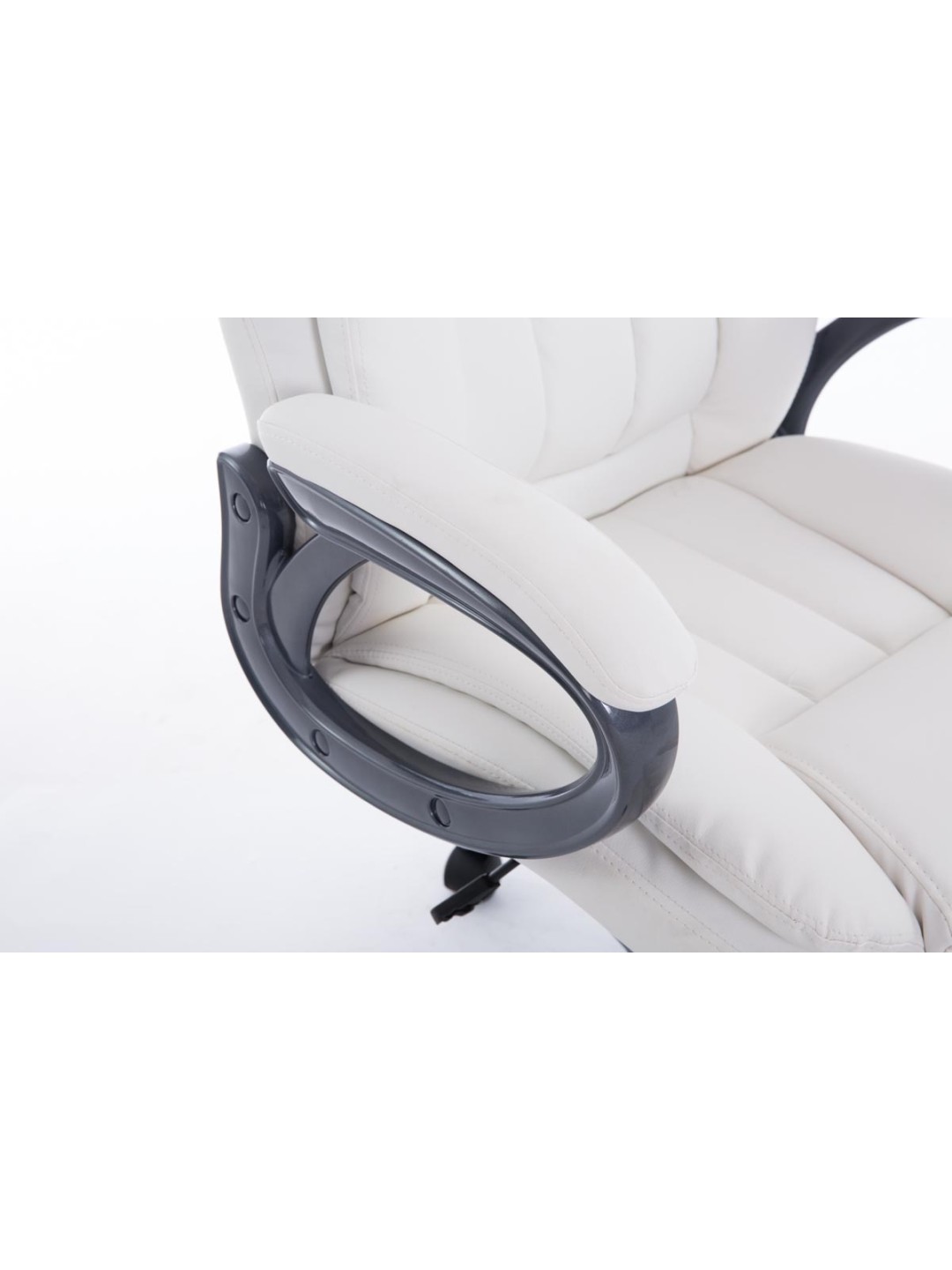 Bern kontorstol imponerer ikke kun med sit elegante look, men ingen kan slå den, når det kommer til komfort og holdbarhed. På grund af forarbejdningen af ​​faste materialer er den ideel til tungere mennesker. Dens gode polstring og det letvedligeholdelsesbetræk i imiteret læder med stilfulde dekorative syninger sikrer en behagelig siddeoplevelse, selv når du bliver der i lang tid. En gastrykfjeder til sædehøjdejustering og den indbyggede vippemekanisme gør bevægelsesfriheden perfekt. Ydermere sikrer en robust plastikbundramme og hjul løs og let rulning, uanset om det er på hårde eller tæppebelagte gulve.