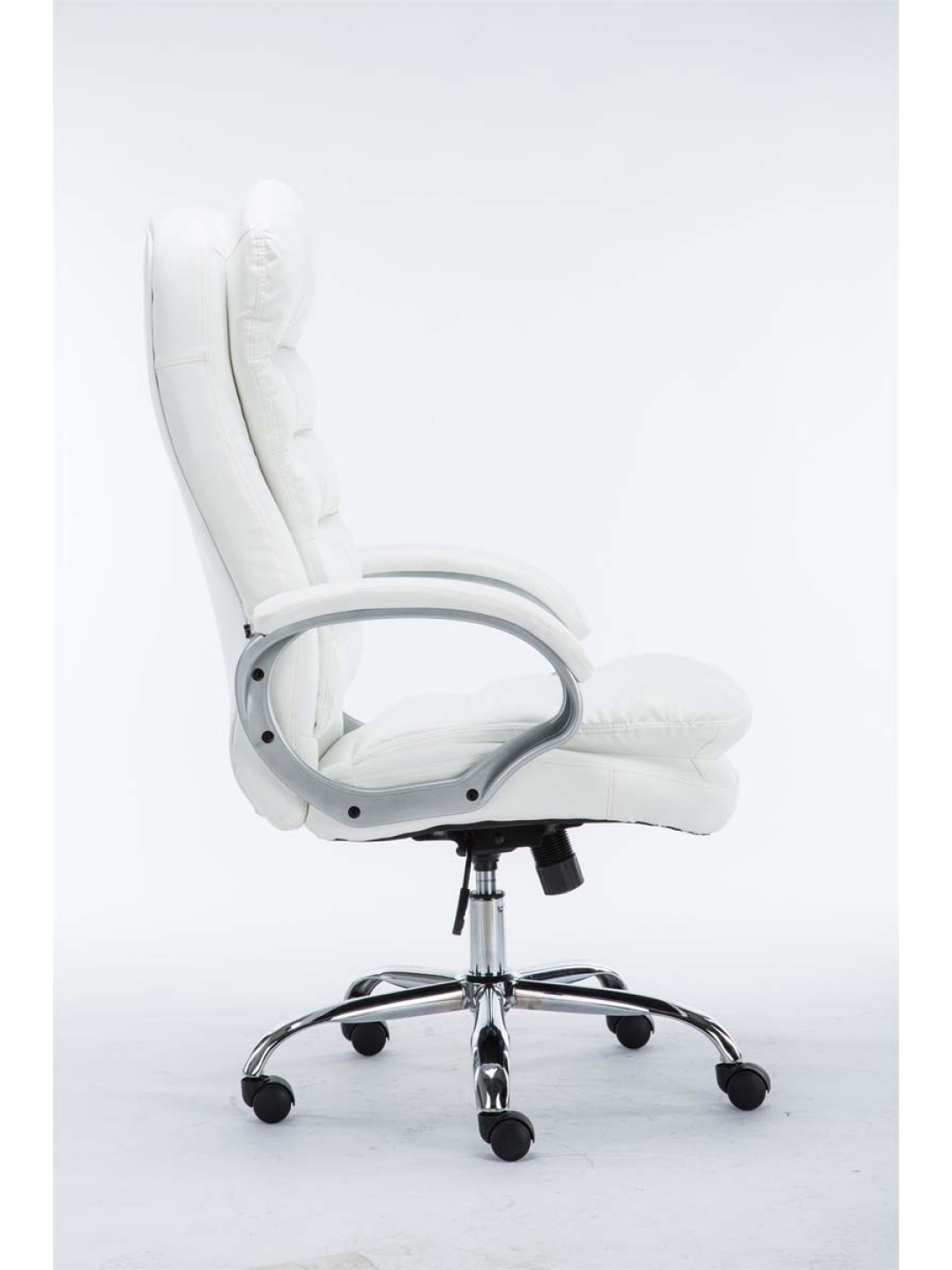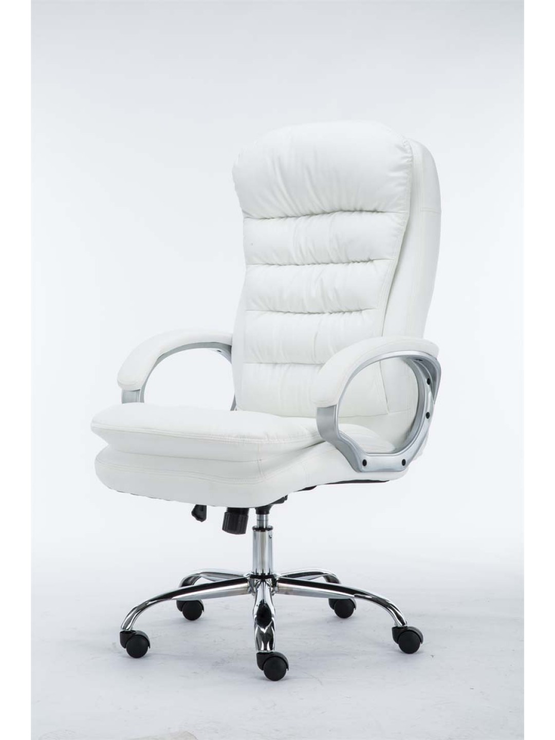 Vancouver lederstolen er en eksklusiv kontorstol med polstring af meget høj kvalitet og betræk i imiteret læder. Kunstlæderbetræk har den fordel, at de er elastiske og vil strække sig jævnt igen, når belastningen aflastes. Dette ser ikke kun pænere ud, men forlænger også sædebetrækets levetid. Stellet er lavet i metal med krom-look og er derfor meget stabilt.