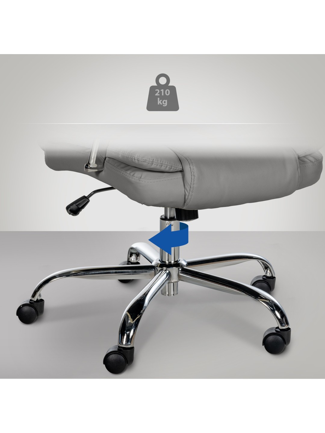 BIG Xanthos kontorstolen er designet til ergonomi og spændstighed, med en belastningskapacitet på op til 210 kg. Kontinuerlig højdejustering og en indbygget vippemekanisme giver individuelle justeringsmuligheder. De polstrede armlæn og ryglæn samt XXL-sædebredden fremmer siddekomforten. En metalramme med krom-look og jævnt kørende hjul garanterer stabilitet og mobilitet på forskellige overflader. Det kunstige læderbetræk er let at pleje og designet til langtidsbrug.