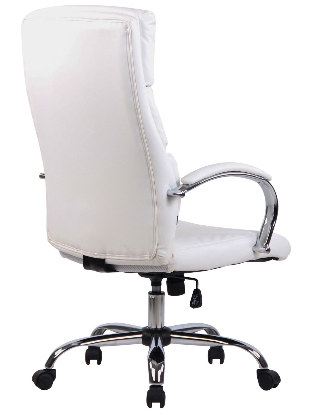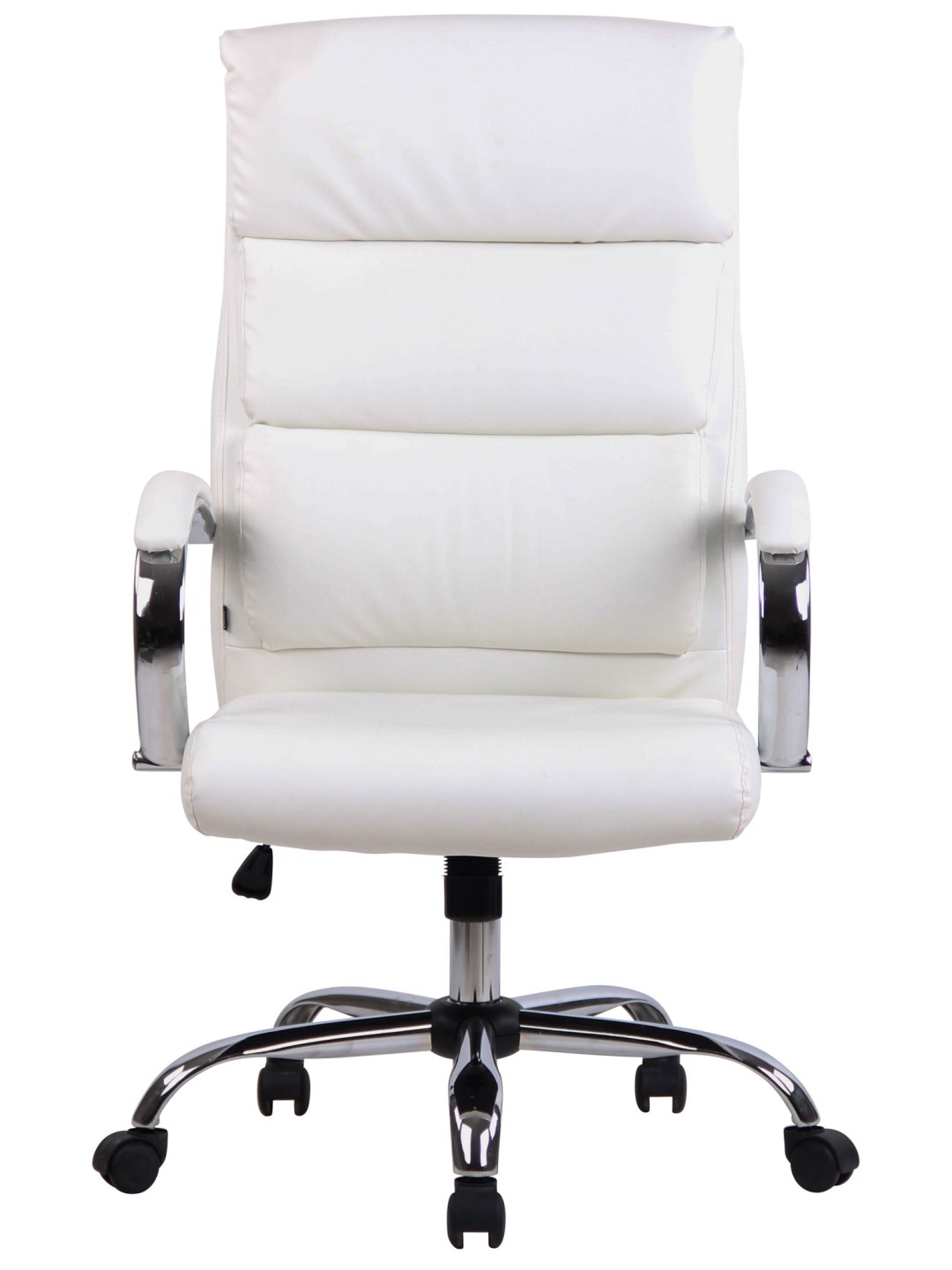 Denne skrivebordsstol har polstring af høj kvalitet med imiteret læder eller stofbetræk. Sædehøjden er trinløst justerbar og garanterer en ergonomisk siddestilling. Ydermere er kontorstolen udstyret med en vippemekanisme, der sikrer mere bevægelsesfrihed. Drejestolen står sikkert på et metalstel i krom-look med fem jævnt kørende hjul. Uanset om det er hårdt eller tæppebelagt gulv - du kan altid rulle let og løst hen over gulvet.