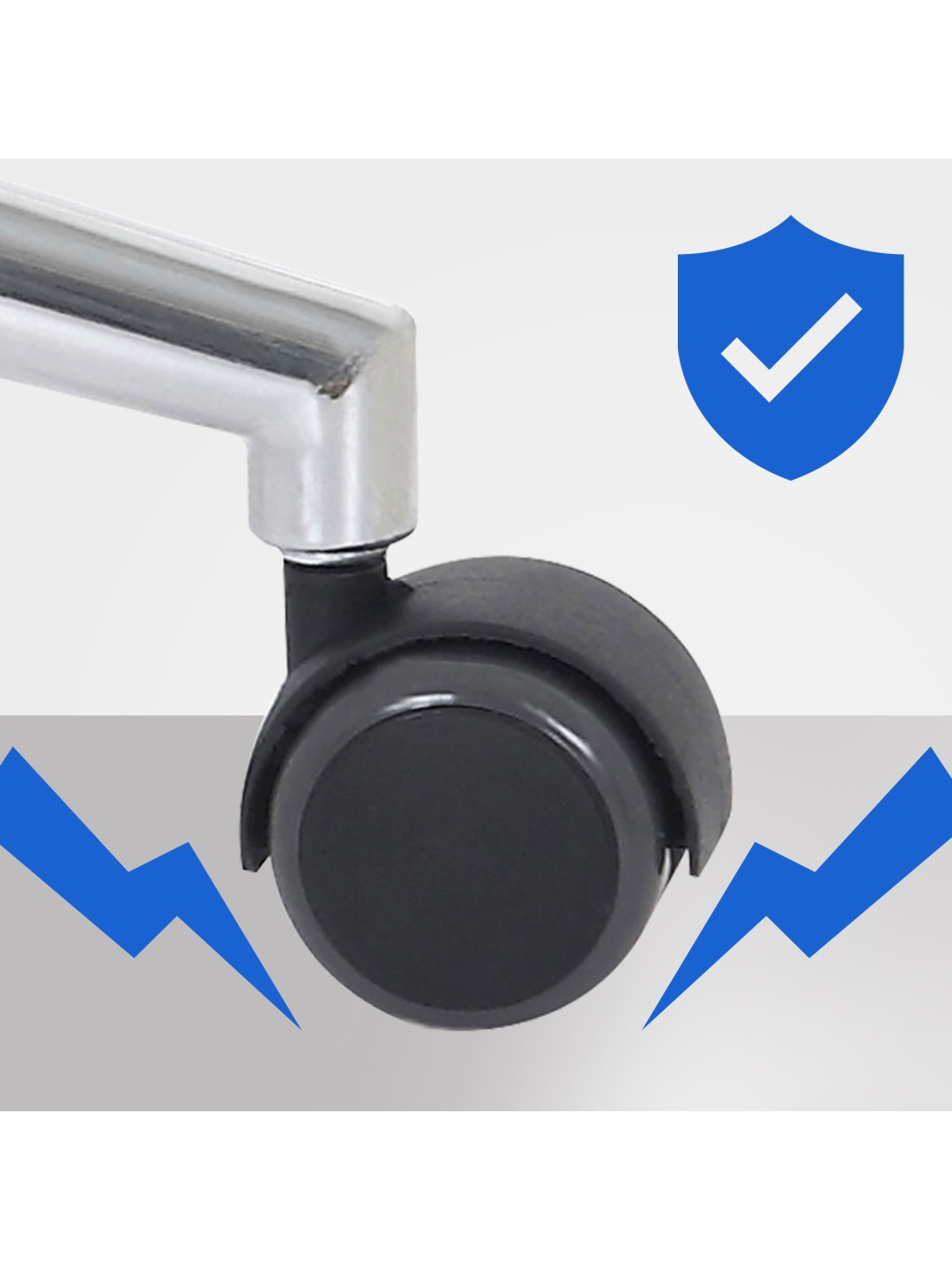 Den ergonomiske kontorstol står på gulvvenlige, glat kørende hjul og er så stabil, at den sikkert kan holde op til 120 kilo.