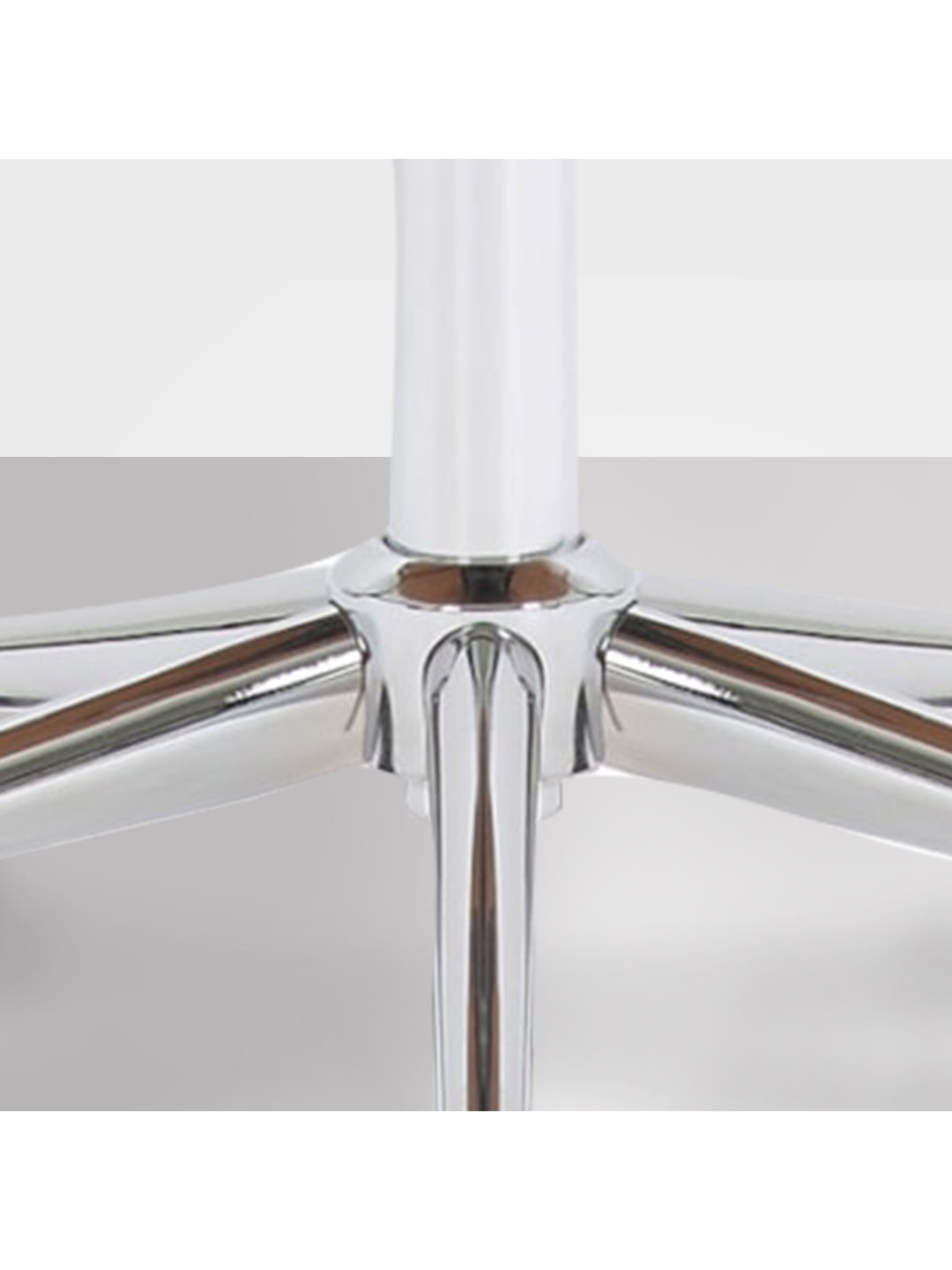 Den frodige polstring over sæde og nakkestøtte samt over armlæn og ryglæn lover en høj siddekomfort, ligesom den integrerede vippemekanisme. Sædehøjden kan justeres trinløst, og skrivebordsstolen kan drejes 360 grader takket være metalstellet i krom-look.
