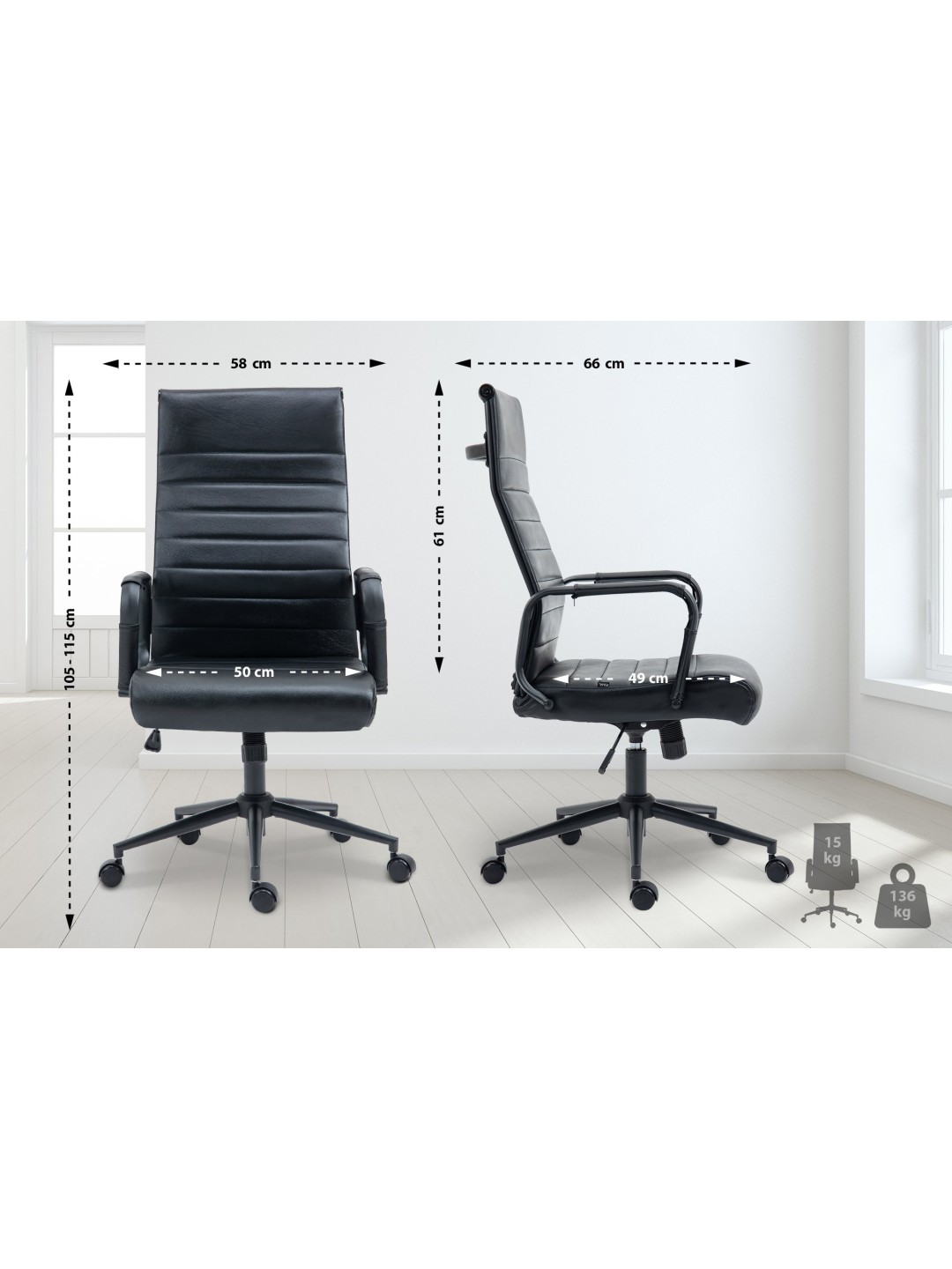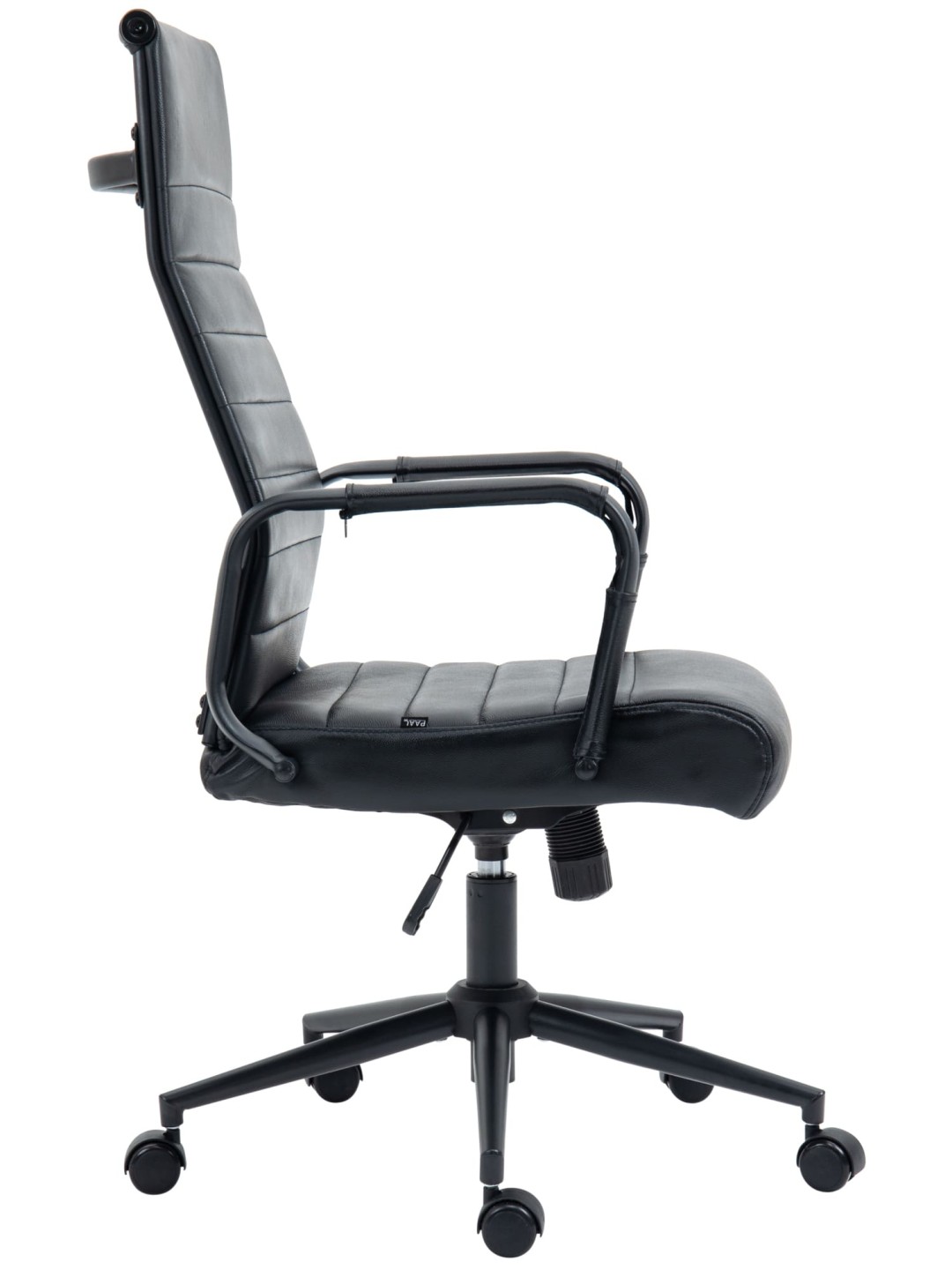 Stabiliteten er garanteret af metalstellet i krom-look, som også fås i sort med sort betræk. De fem glidende hjul betyder, at du nemt og løst kan rulle hen over gulvet - uanset om det er på hårde eller tæppebelagte gulve.