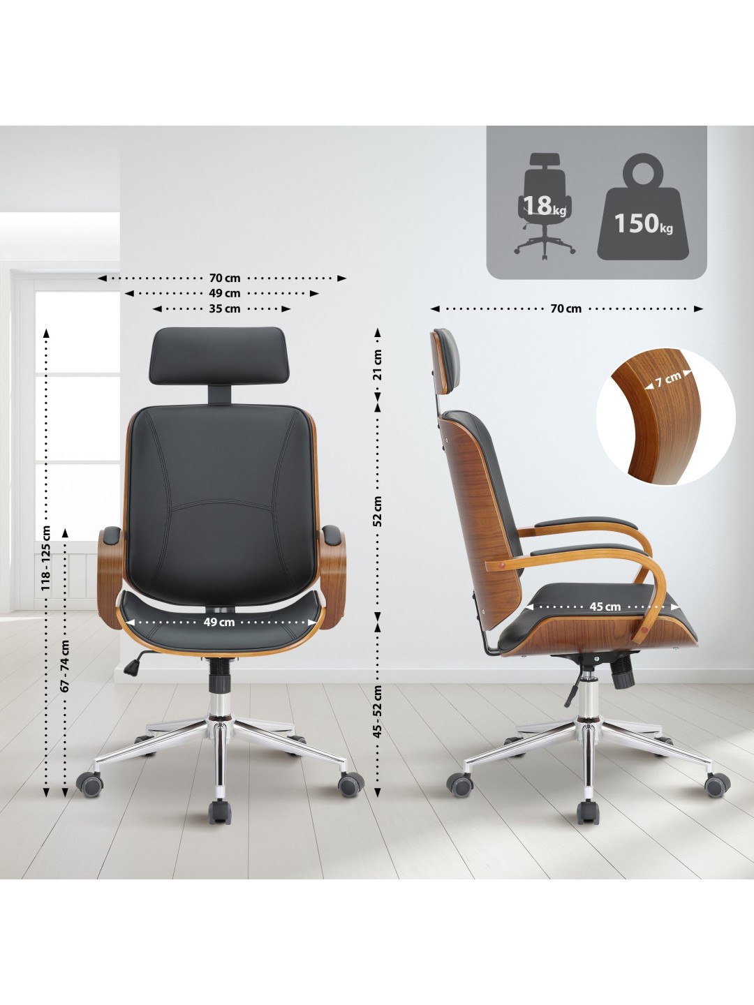 Dayton kontorstolen kombinerer ergonomisk komfort, moderne design og holdbare materialer - ideel til brug på hjemmekontoret, studiet eller det klassiske kontor. Det komfortabelt polstrede sæde med højkvalitets kunstlæderbetræk, den integrerede nakkestøtte og det høje ryglæn sikrer en sund siddestilling - selv på lange arbejdsdage.