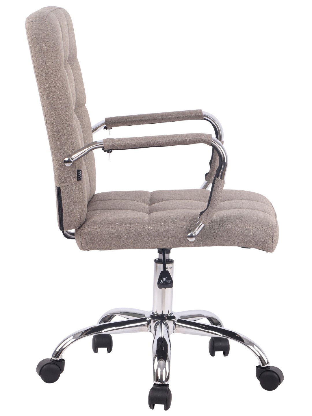 Deli PRO kontorstol i stof imponerer med sit moderne design og solide håndværk. Stofbetrækket med de smukke dekorative syninger ser ikke kun elegant ud, det er også særdeles robust og let at vedligeholde. Sædehøjden kan justeres trinløst med håndtaget under sædet. Dette garanterer et højt niveau af komfort, mens du arbejder over længere tid. Derudover lover metalstellet i krom-look en lang levetid. Kontorstolen står sikkert på fem jævnt kørende hjul. Lige meget om det er hårde eller tæppebelagte gulve - du vil altid kunne rulle let og løst hen over gulvet.