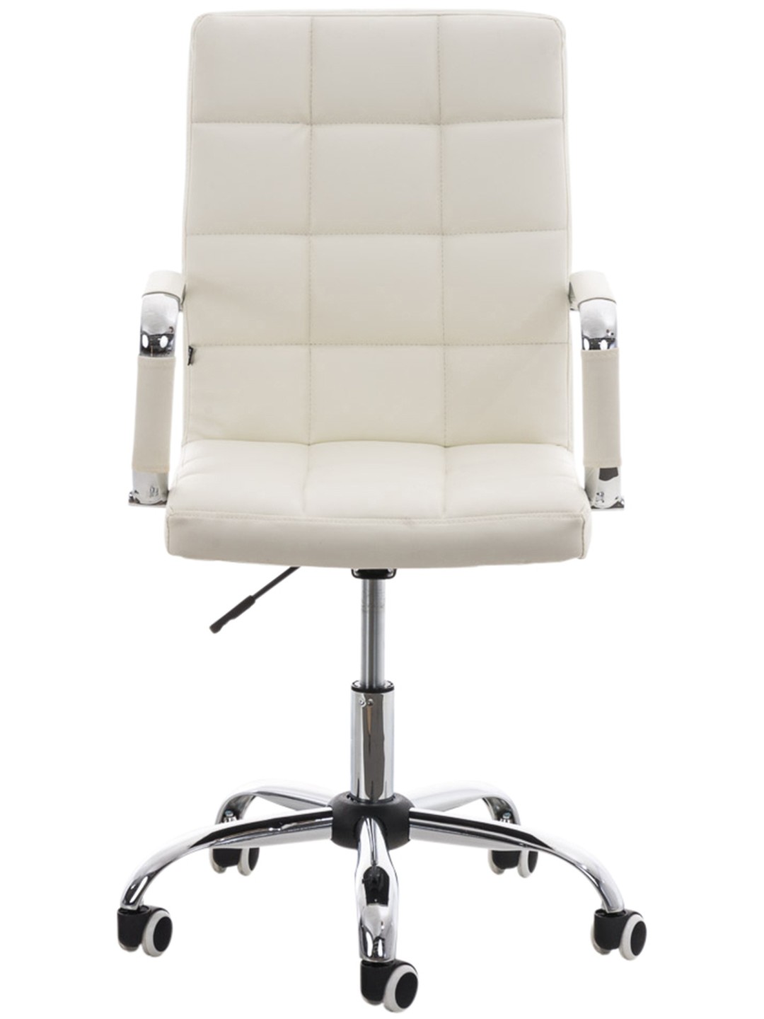 Deli V2 kontorstolen imponerer med sit moderne design og tilbyder et højt niveau af komfort under arbejdet takket være ryglænet. Denne eksklusive Deli V2 kontorstol har polstring af meget høj kvalitet og betræk i imiteret læder. Kunstlæderbetræk har den fordel, at de er elastiske og vil strække sig jævnt igen, når belastningen aflastes. Dette ser ikke kun pænere ud, men forlænger også sædebetrækets levetid. Stellet er lavet af metal med krom look og er derfor meget stabilt. Takket være den justerbare sædehøjde er ergonomisk siddegaranti garanteret. Sædehøjden kan justeres trinløst med håndtaget under sædet. Kontorstolen står sikkert på fem jævnt kørende hjul. Uanset om det er hårde eller tæppebelagte gulve - du vil altid kunne rulle let og løst hen over gulvet.