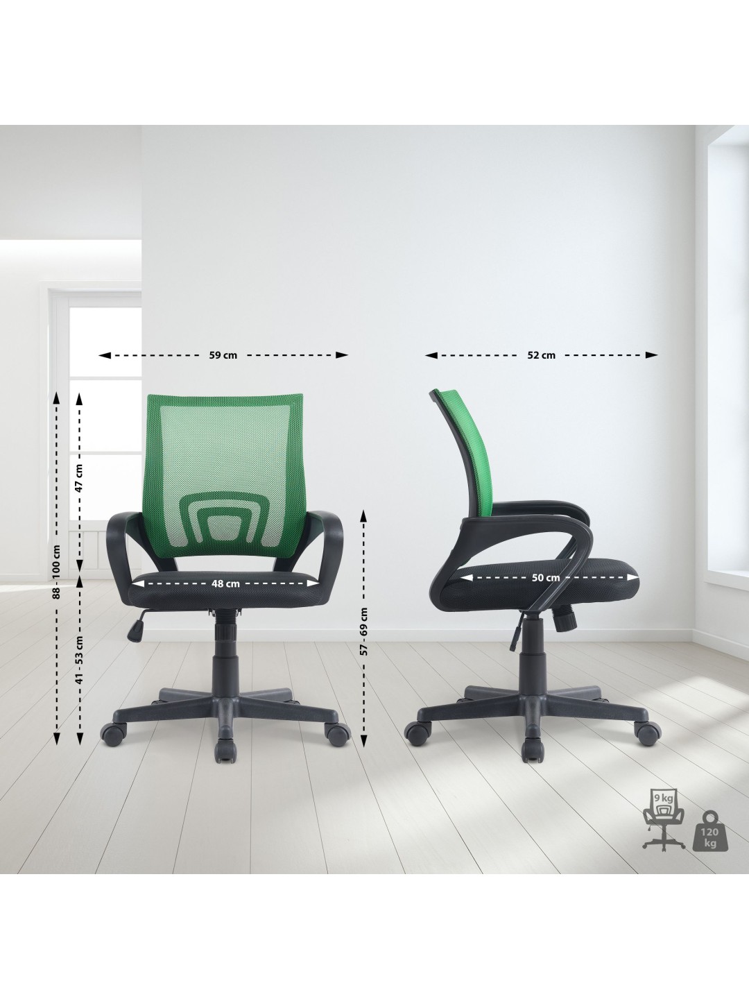 Kontorstolen har meget robuste hjul, der egner sig til både hårde gulve og tæpper. Skrivebordsstolen kan sikkert holde op til 120 kilo.