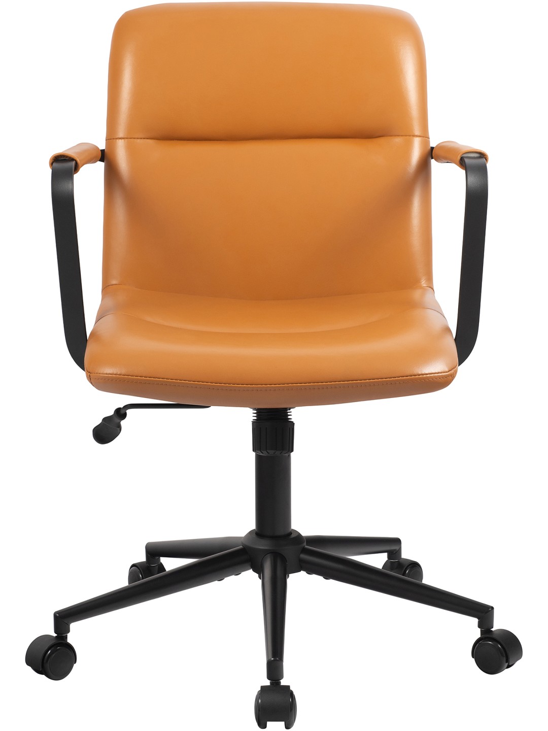Det sorte metalstel med en robust gastrykfjeder sikrer stabilitet, mens PU-hjul muliggør stille og fleksibelt arbejde>Den stilfulde hjemmekontorstol er ideel til den stilfulde hjemmekontor.