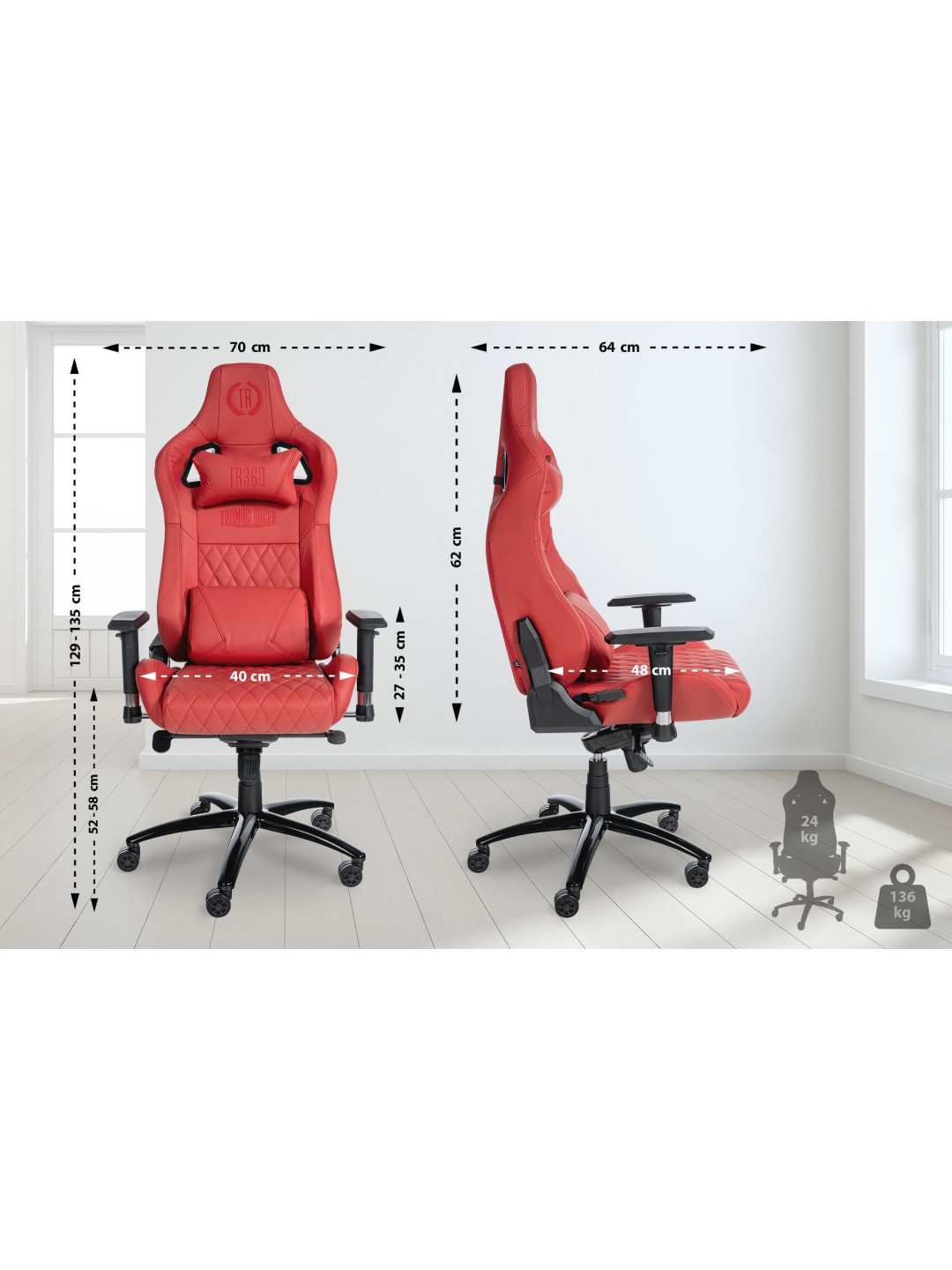Højde på armlæn: 5 cm2. Belastningsevne: 136 kg