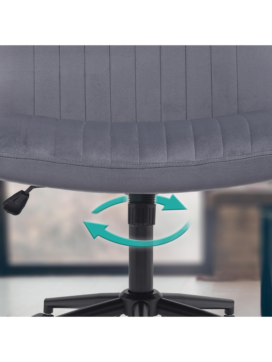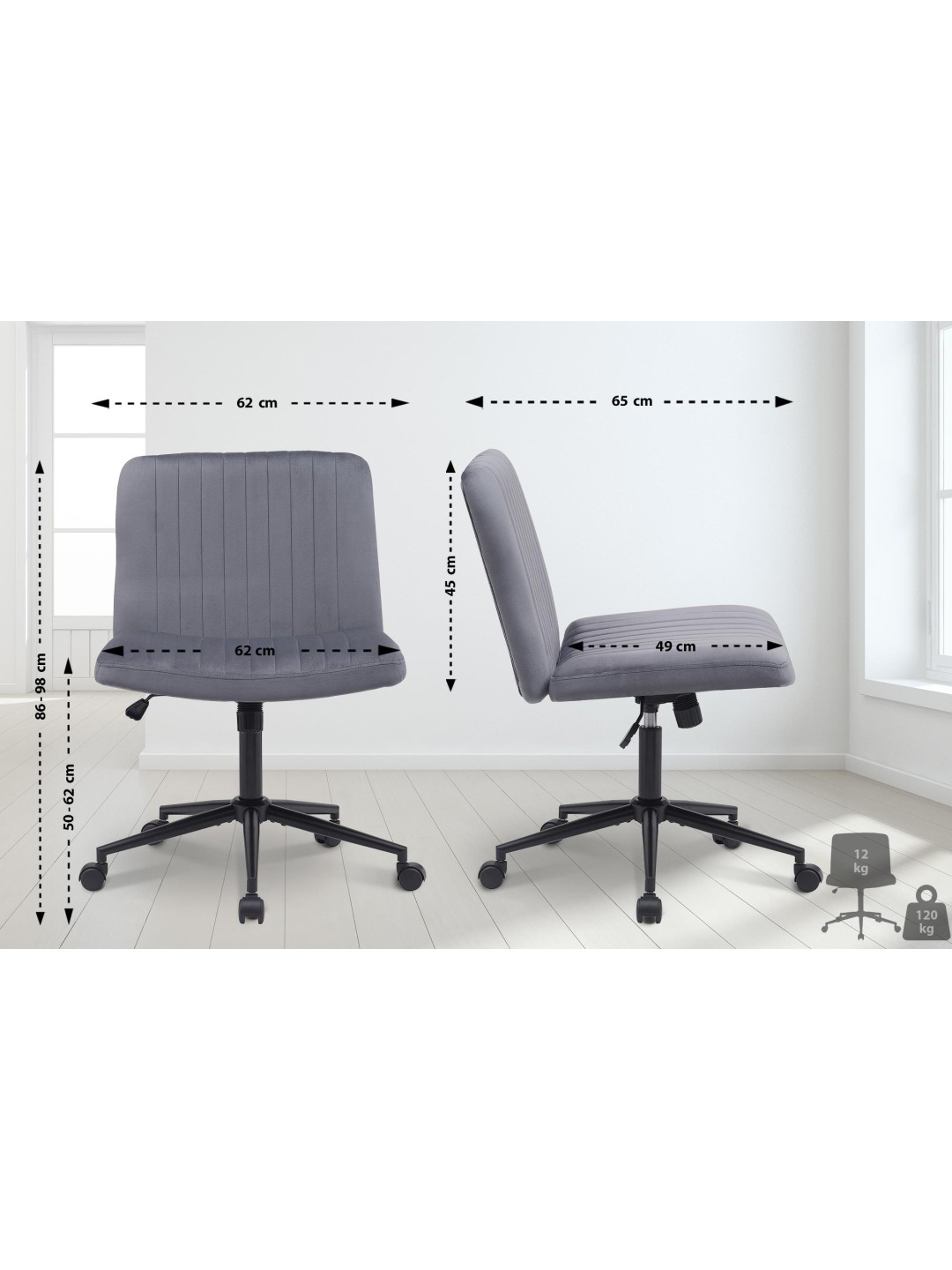 Skrivebordsstolen er højdejusterbar og kan drejes 360 grader, så du kan tilpasse den individuelt til dine behov. Takket være de fem glidende hjul kan stolen flyttes ubesværet uden at beskadige gulvet. Spændingen af ​​den integrerede gyngemekanisme kan justeres.