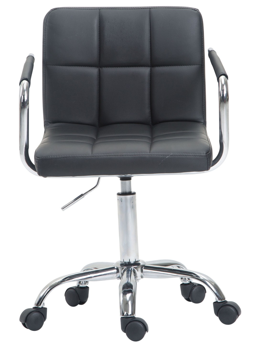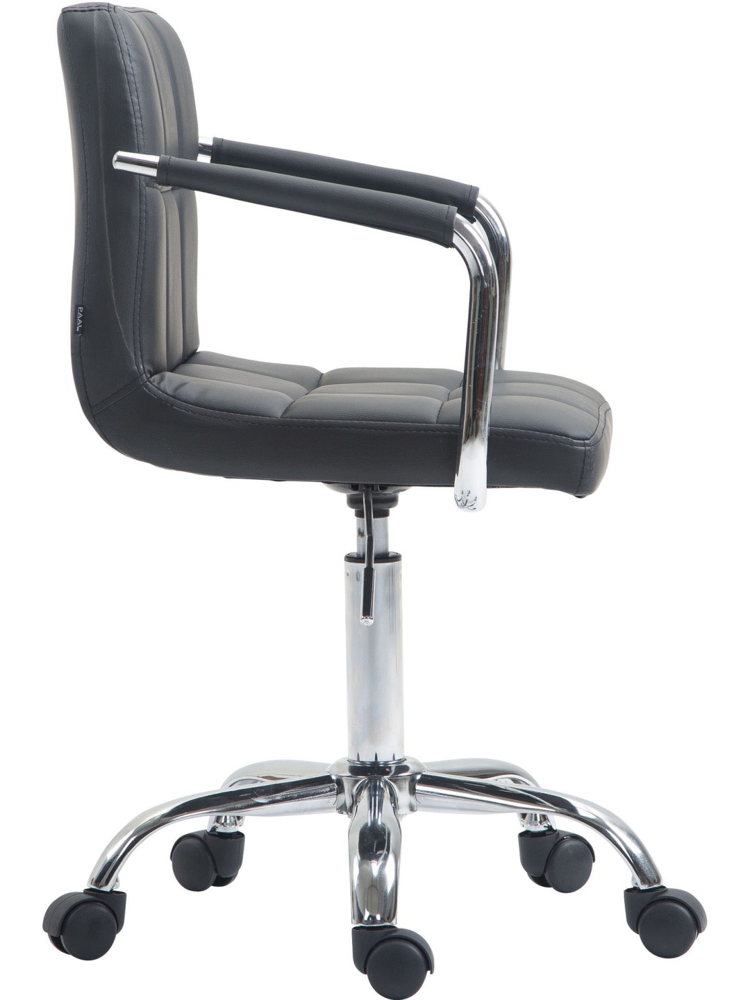 Denne eksklusive Lucy V2 kontorstol imponerer ikke kun med sit moderne look, men ingen kan slå den, når det kommer til komfort. Dens højkvalitets polstring og det letvedligeholdelsesbetræk i imiteret læder (100 % polyurethan) sikrer en behagelig siddeoplevelse. Takket være det lave ryglæn er Lucy V2-modellen også ideel til mindre rum - så du ikke mister overblikket! Det elegante kromstel og de robuste, buede armlæn med betræk i imiteret læder giver det hele noget ekstra. Takket være den trinløst justerbare sædehøjde garanterer denne kontorstol også en ergonomisk siddestilling hele tiden. Den står sikkert på fem jævnt kørende hjul og en metalramme i krom-look. Lige meget om det er hårde eller tæppebelagte gulve – du vil altid kunne rulle let og løst hen over gulvet.