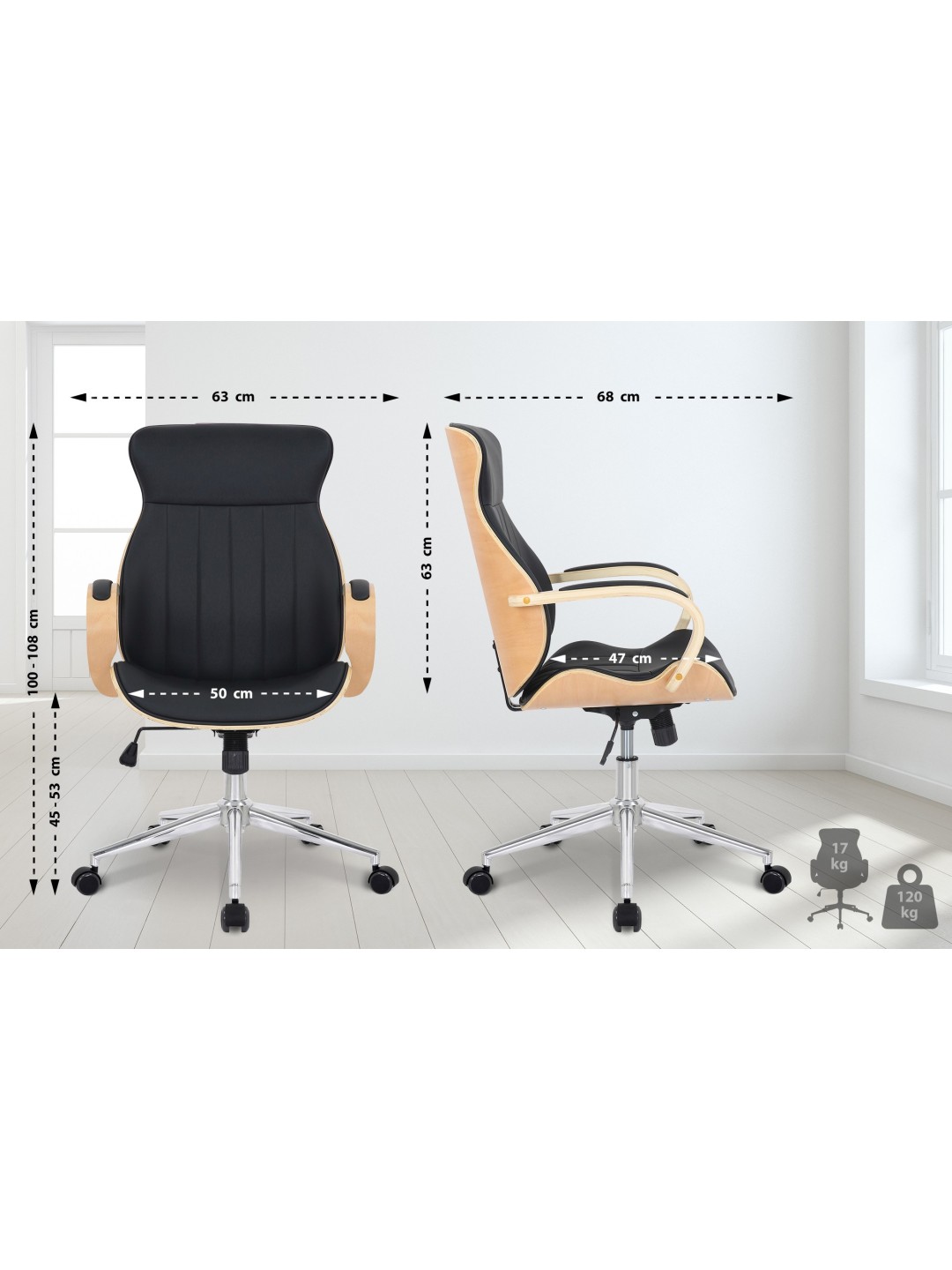 Det højdejusterbare sæde (45-53 cm) og det vippelige ryglæn, som kan fastgøres i din foretrukne position, muliggør ergonomisk siddestilling i længere perioder. Med en bæreevne på op til 120 kg byder denne stol på stabilitet, mens det forkromede metalstel sikrer holdbarhed og et stilfuldt look.
