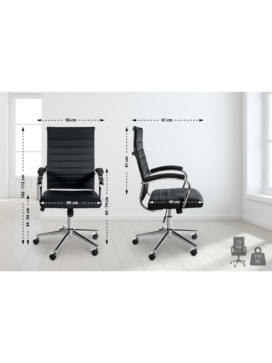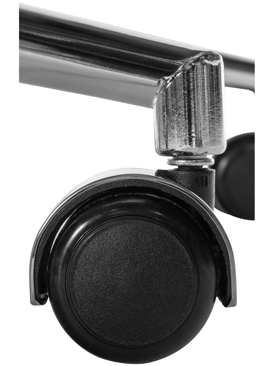 Den robuste metalramme med et krom-look sikrer, at stabilitet og elegance. Udstyret med hjul kan denne drejestol holde op til 135 kg.