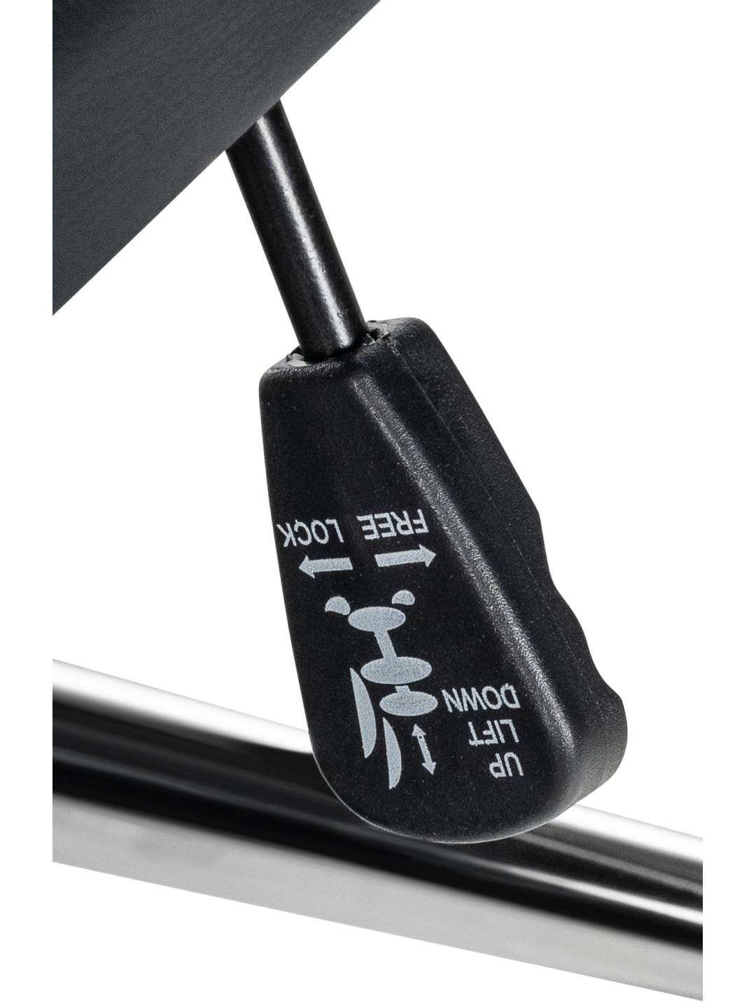 Stolen kan justeres på mange måder: højdejusterbar, kan drejes gennem 360 grader og er også udstyret med en vippefunktion. fast.