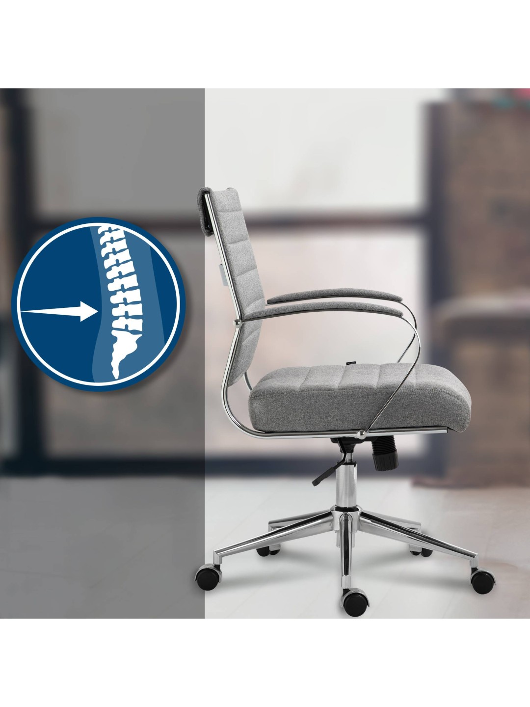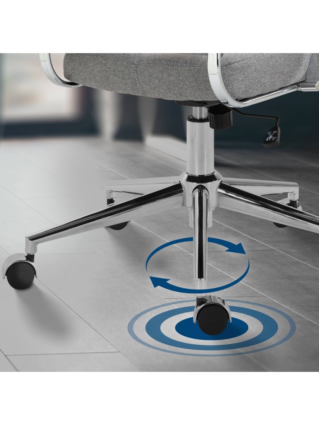 Oakland kontorstolen kombinerer ergonomisk design med individuel komfort og et stilfuldt look. Det er den perfekte tilføjelse til ethvert kontor, hvor sundhed og velvære på arbejdspladsen er vigtig. Det polstrede ryglæn og den ergonomiske form understøtter din naturlige siddestilling. Med det højdejusterbare sæde, den justerbare vippefunktion og de 360° roterende letløbende hjul tilpasser stolen sig fleksibelt til dine behov. Den kromramme giver stabilitet og lang levetid. Oakland tilbyder med sit brede sæde optimal siddekomfort selv på lange arbejdsdage.