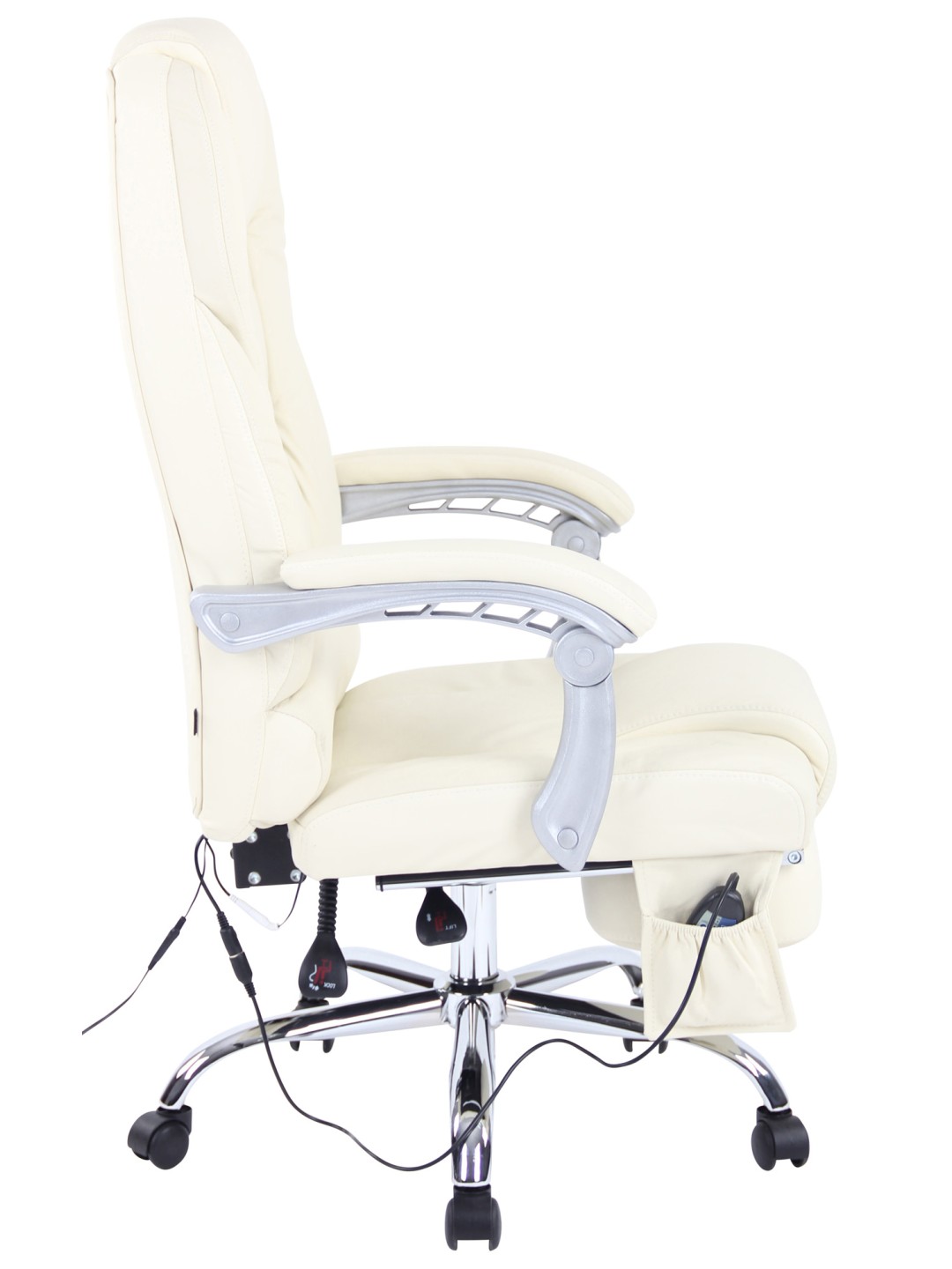 Kontorstol Pacific ægte læder med massagefunktion, creme