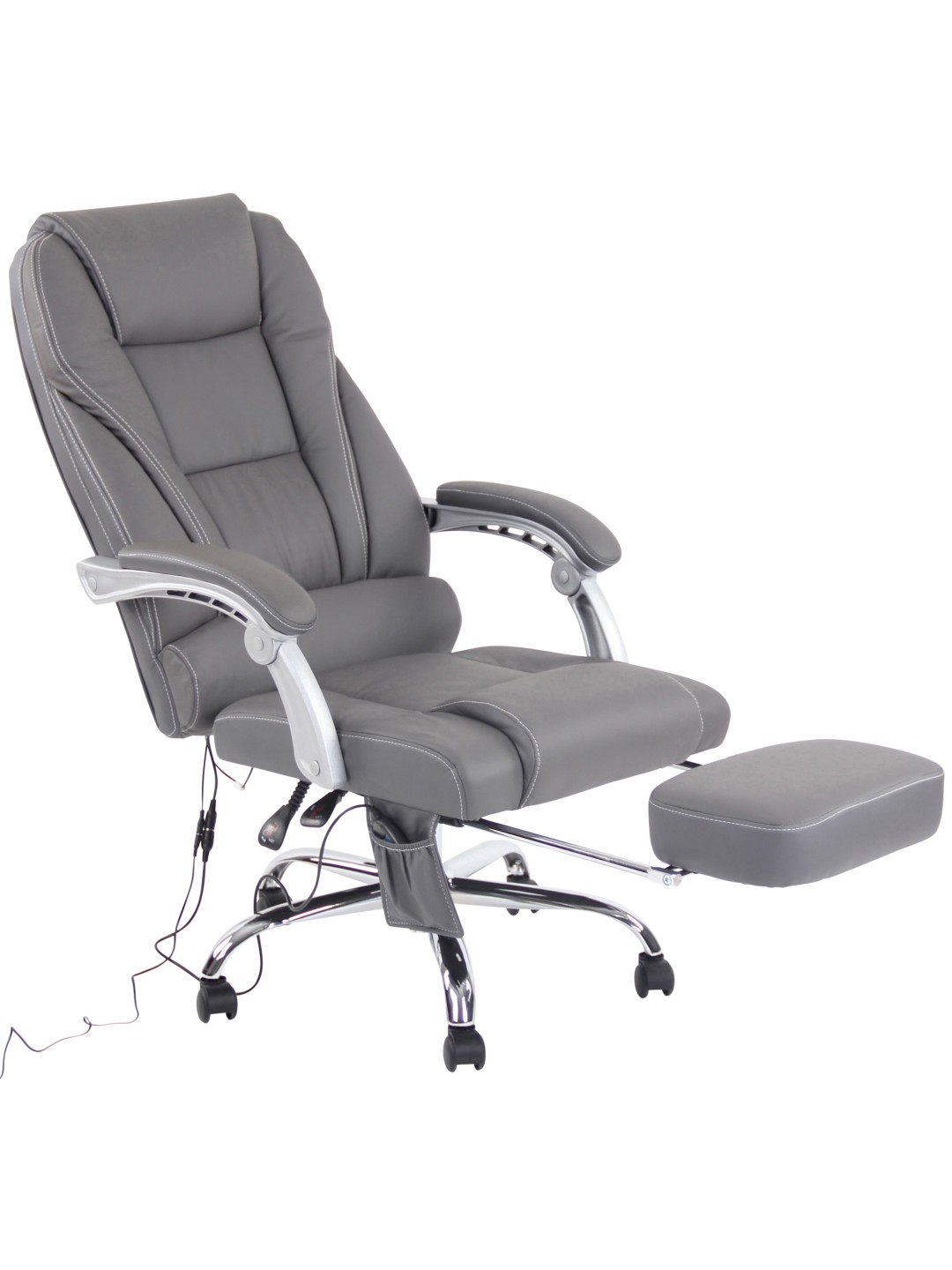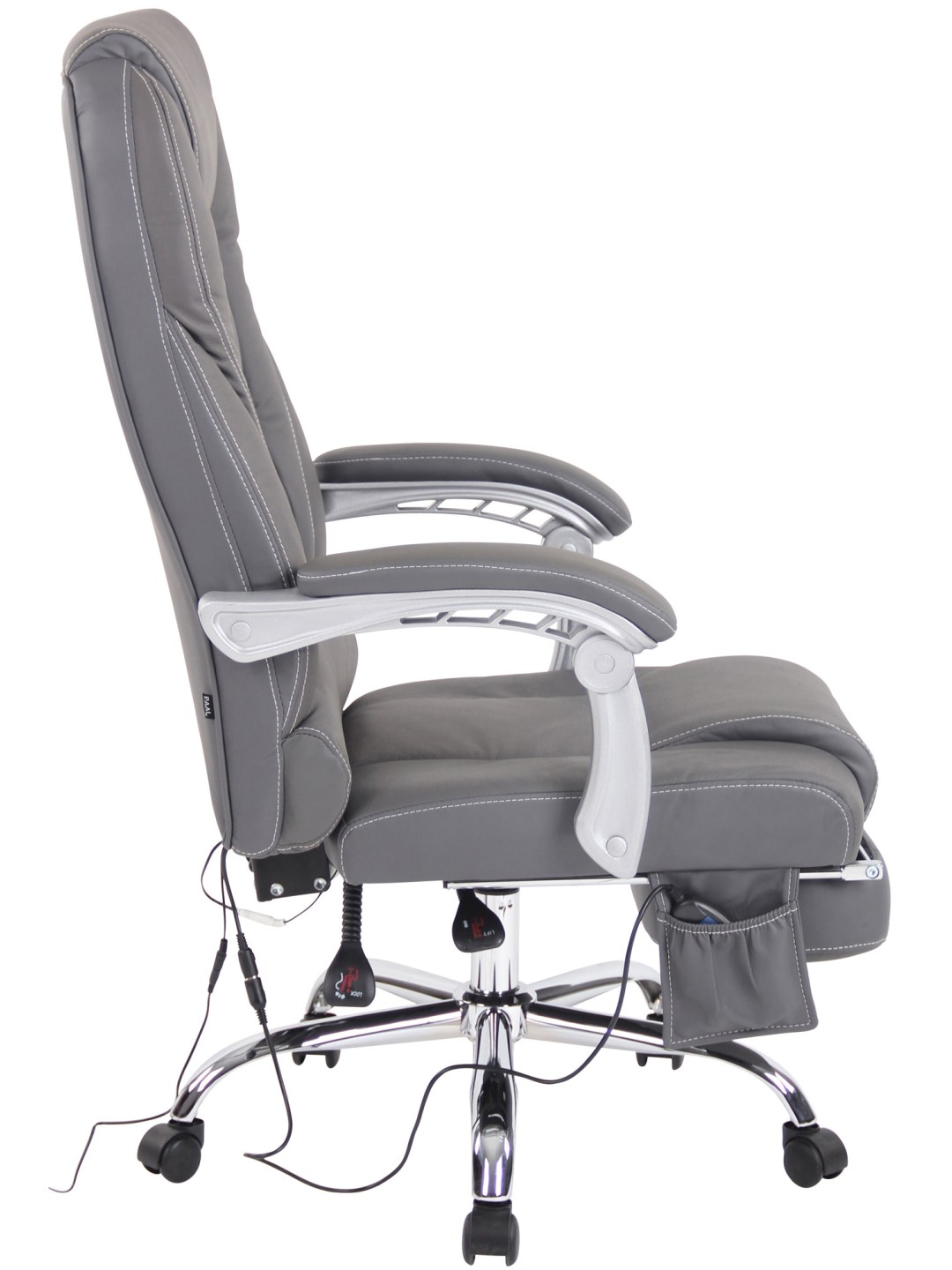 Kontorstol Pacific ægte læder med massagefunktion, grå