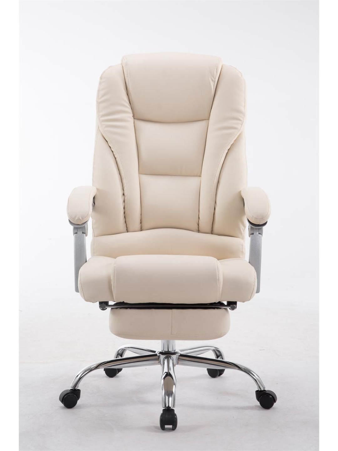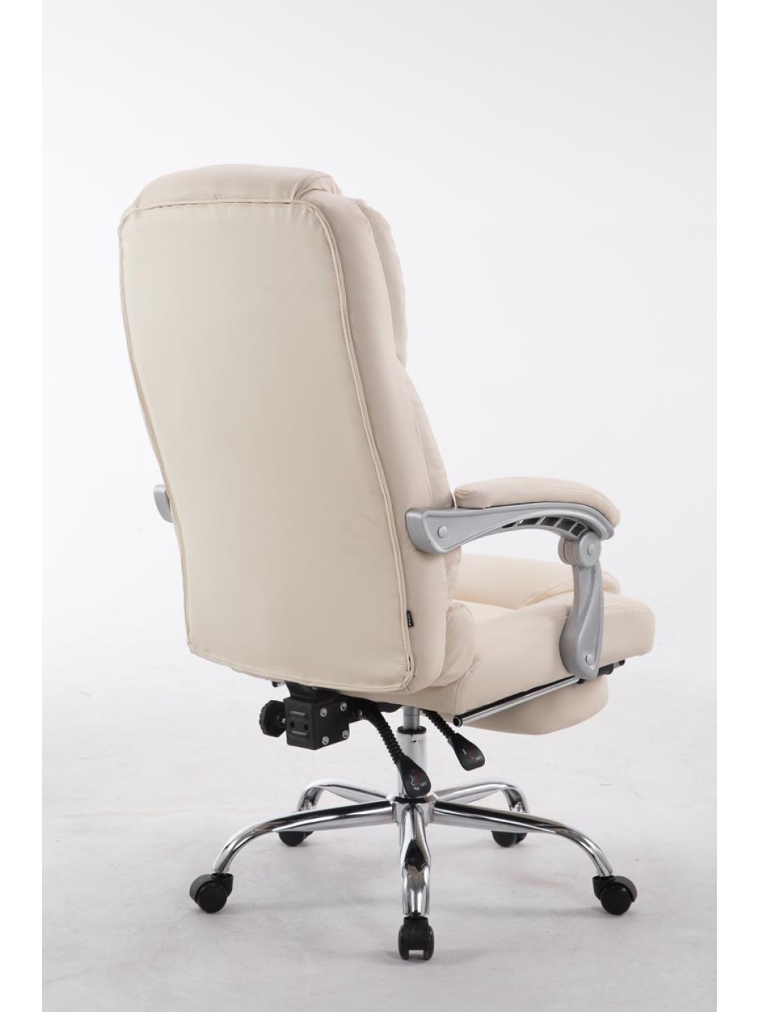 Denne imponerende Pacific kontorstol imponerer ikke kun med sit elegante udseende, men ingen kan slå den, når det kommer til komfort og holdbarhed. Dens gode polstring og det letvedligeholdelsesbetræk i imiteret læder med stilfulde dekorative syninger sikrer en behagelig siddeoplevelse, selv når du bliver der i lang tid. Takket være den trinløst justerbare sædehøjde garanterer Pacific kontorstolen også en ergonomisk siddestilling hele tiden. Den let justerbare fod- og ryglæn sørger desuden for en behagelig pause ind imellem, hvor du kan læne dig tilbage og sætte benene op. Den står sikkert på fem jævnt kørende hjul og en metalramme i krom-look. Uanset om det er hårde eller tæppebelagte gulve - du vil altid kunne rulle let og løst hen over gulvet.
