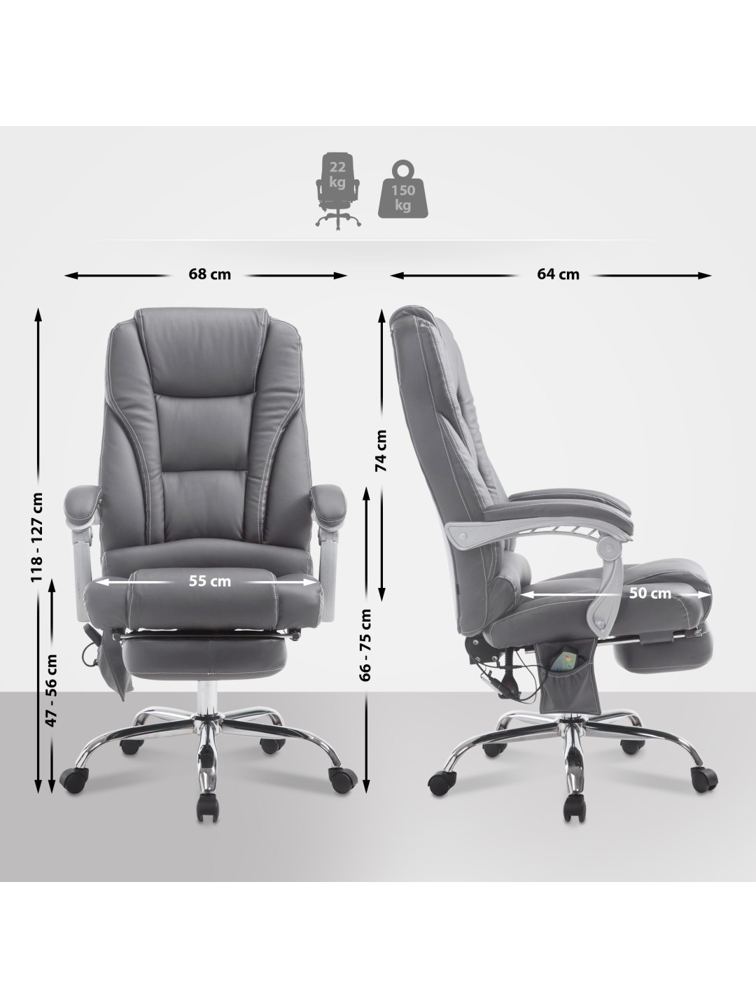 Pacific kontorstol med massagefunktion