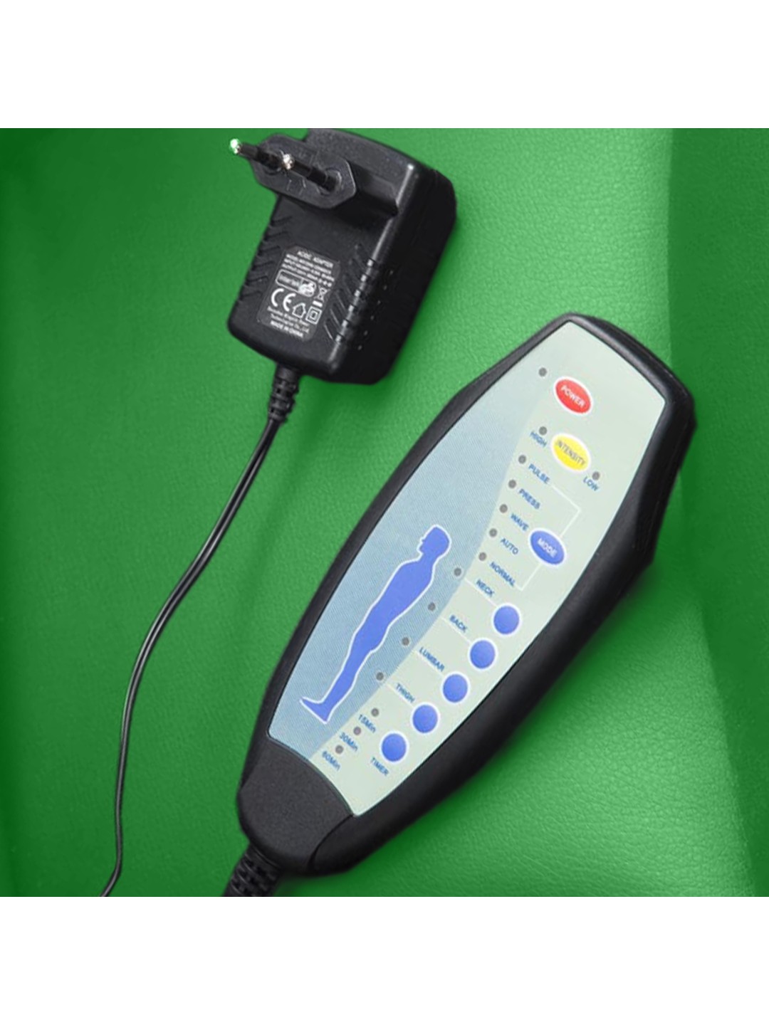 Massagefunktionen tilbyder to intensitetsniveauer og fem tilstande. Der er 7 massagepunkter (1 hoved, 2 ryg, 2 lændehvirvler og 2 lår).