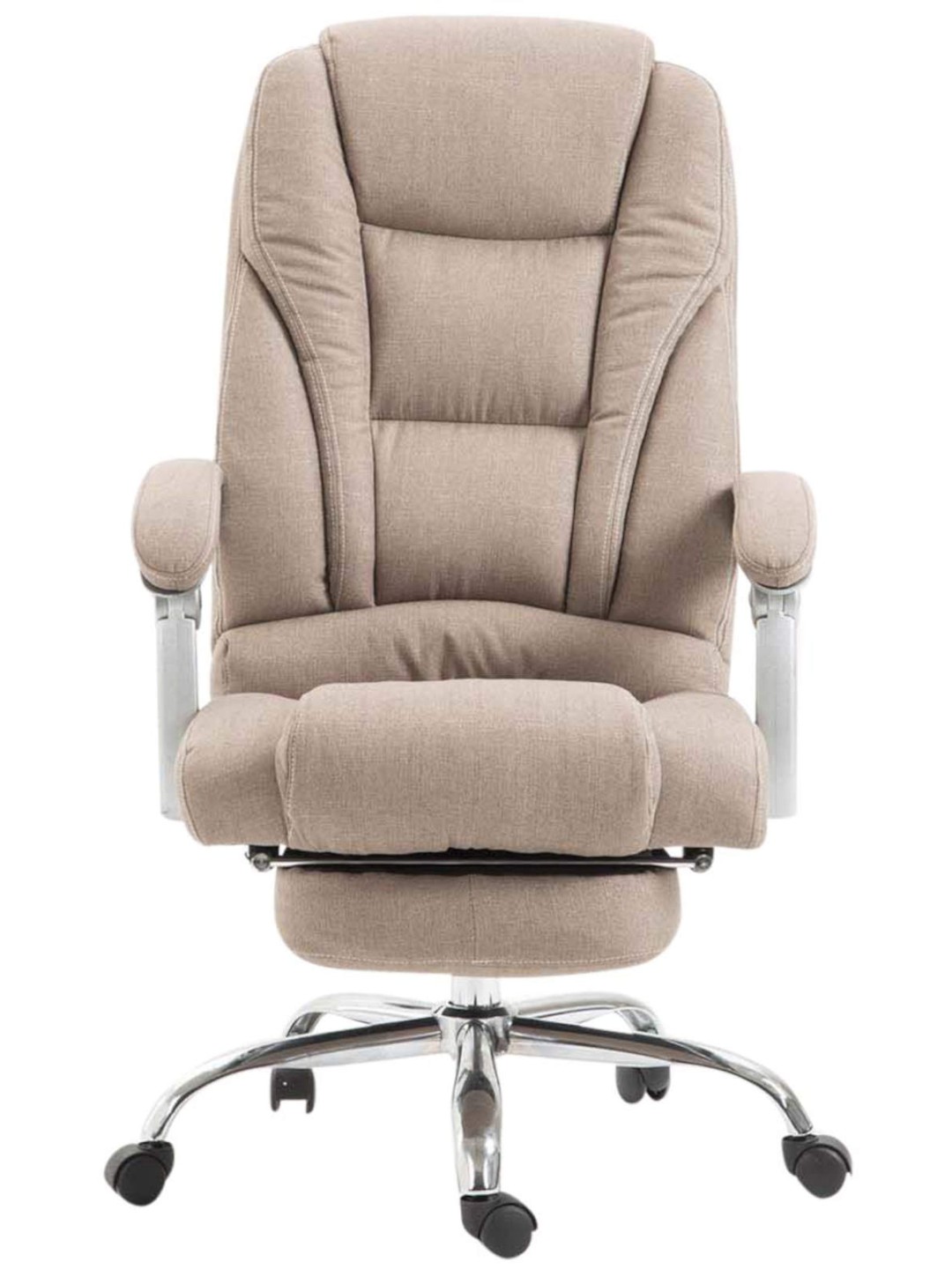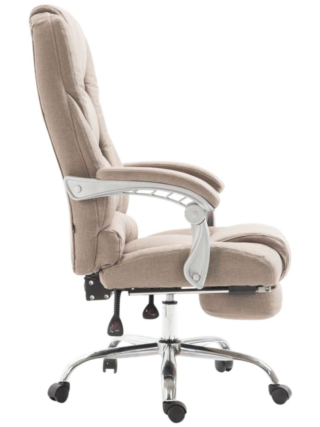 Denne imponerende Pacific kontorstol imponerer ikke kun med sit elegante look, men også når det kommer til komfort og holdbarhed. Dens gode polstring og det plejevenlige stofbetræk med stilfulde dekorative sømme sikrer en behagelig siddeoplevelse, selv når du opholder dig der i længere tid. Takket være den trinløst justerbare sædehøjde garanterer Pacific kontorstolen også en ergonomisk siddestilling hele tiden. Den let justerbare fod- og ryglæn sørger desuden for en behagelig pause ind imellem, hvor du kan læne dig tilbage og sætte benene op. Den står sikkert på fem jævnt kørende hjul og en metalramme i krom-look. Lige meget om det er hårde eller tæppebelagte gulve - du kan altid rulle let og løst hen over gulvet.