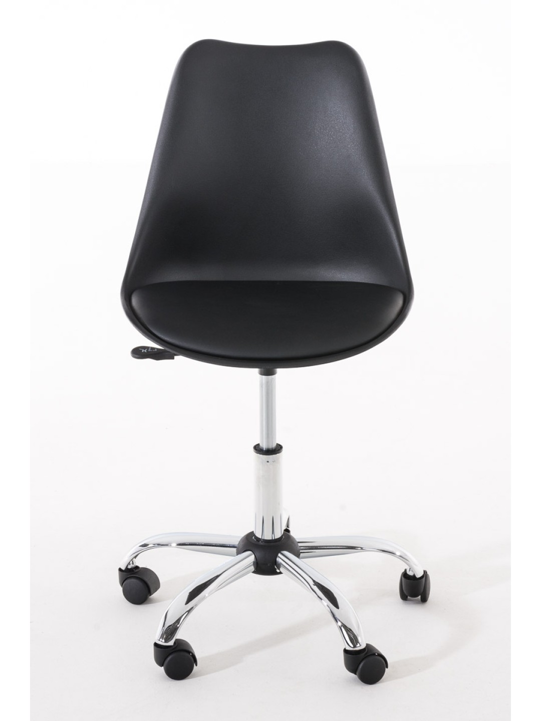 Denne kontorstol imponerer med sit moderne design og giver ethvert studie et eksklusivt look. Arbejdsskamlen imponerer ikke kun med sine fremragende siddeegenskaber, men også med sin spændende materialeblanding af plast, kunstlæder og metal. Sædeskallen er lavet af robust plastik. Den komfortable polstring med imiteret læderbetræk giver dig mulighed for at sidde komfortabelt, og ryglænet giver en høj grad af komfort under arbejdet. Takket være den justerbare sædehøjde er ergonomisk siddegaranti garanteret. Sædehøjden kan justeres trinløst med håndtaget under sædet. Det robuste stel er lavet af metal med et krom-look. Kontorstolen står sikkert på fem jævnt kørende hjul. Lige meget om det er hårde eller tæppebelagte gulve – du vil altid kunne rulle let og løst hen over gulvet.