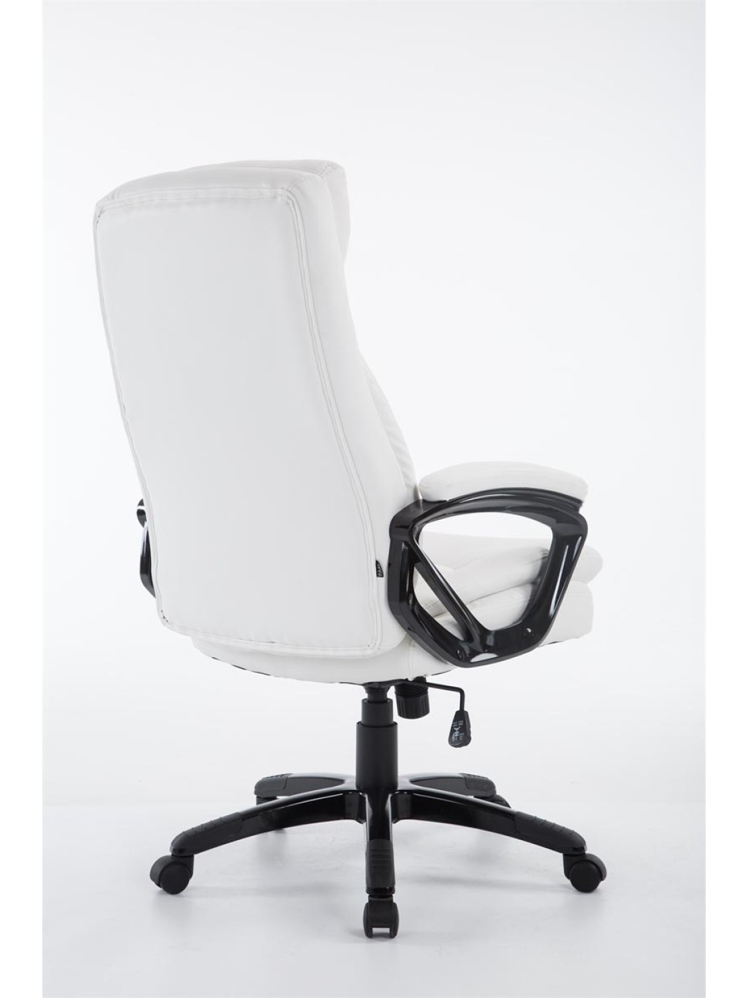 Den moderne komfort direktionsstol Platon med betræk i imiteret læder har den fordel, at den er særlig nem at passe. Kunstlæder ser ikke kun smukt ud, men er elastisk og strækker sig jævnt igen, når belastningen fjernes, hvilket garanterer en lang levetid for sædebetræk. Det ekstra høje ryglæn med formet polstring i hovedområdet samt den bløde polstring på armlænene gør arbejdet behageligt. Den trinløst justerbare sædehøjde og den individuelt låsbare vippemekanisme sikrer mere bevægelsesfrihed. Rammen på drejestolen er lavet af robust plastik og står på fem robuste plasthjul. Lige meget om det er hårde eller tæppebelagte gulve – du vil altid kunne rulle let og løst hen over gulvet. Kontorstolen leveres adskilt.