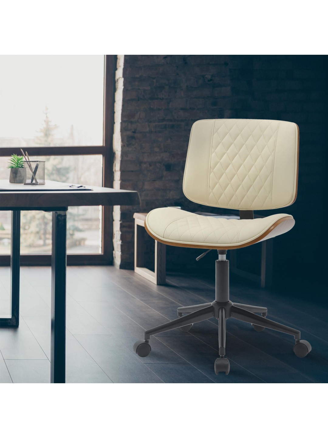 Kontorstol Plover imiteret læder, valnød/creme