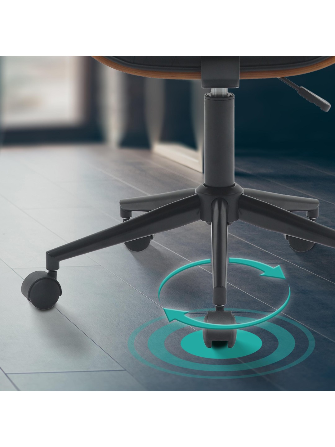 Højdejusterbarheden giver mulighed for individuel justering og stolen kan drejes 360 grader rundt om sin egen akse. Metalrammen med sine fem jævnt kørende hjul er så stabil, at den sikkert kan belastes med op til 120 kg.