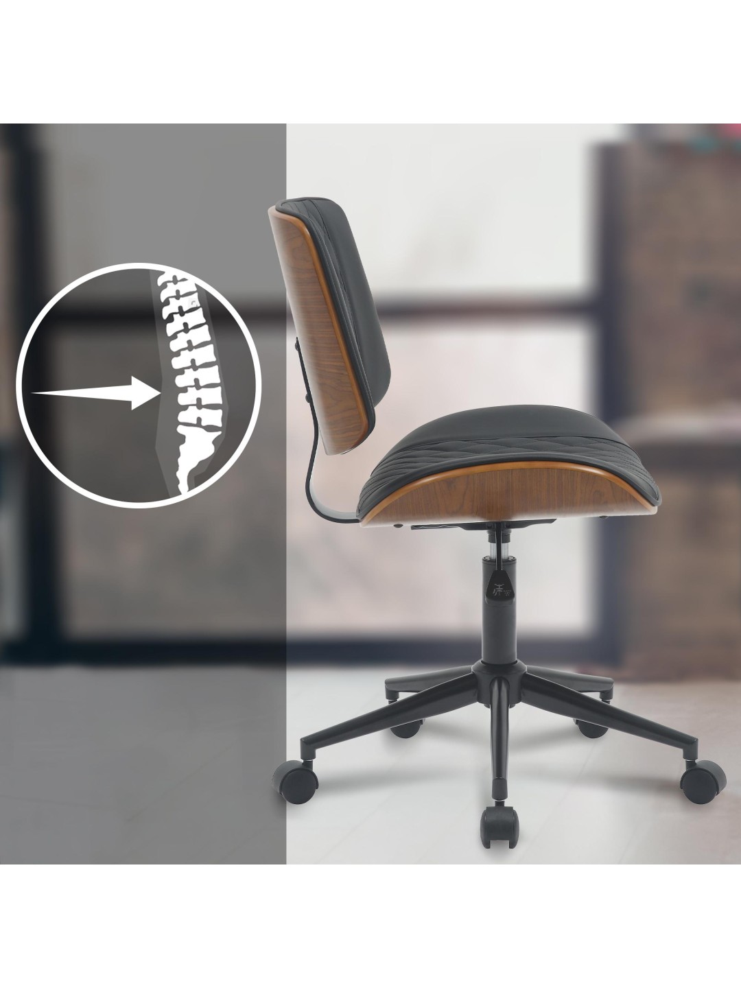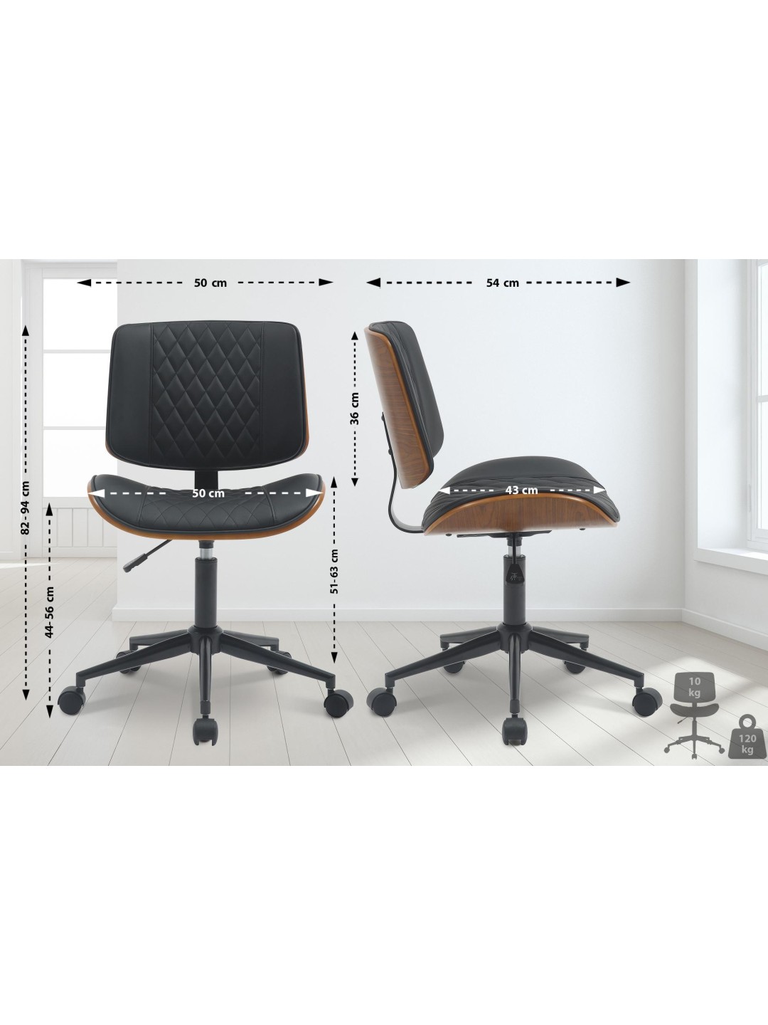 Kontorstol Plover imiteret læder, valnød/sort