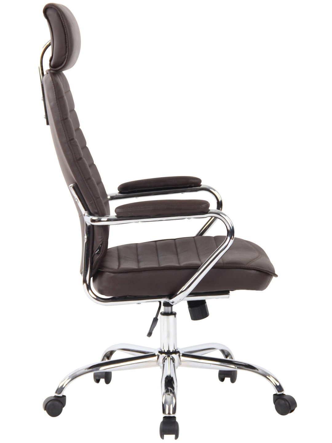 Direktørstolen Rako er en kontorstol med polstring af meget høj kvalitet og et moderne look. Coveret i ægte læder ser ikke kun smukt ud, det er også særdeles robust og nemt at pleje. En robust metalramme med krom-look sikrer også et sikkert stativ. Sædehøjden er trinløst justerbar og garanterer ergonomisk siddeplads selv i timevis. Den indbyggede vippemekanisme sikrer også mere bevægelsesfrihed. Rako drejestolen står solidt på fem jævnt kørende hjul. Uanset om det er hårde eller tæppebelagte gulve - du vil altid kunne rulle let og løst hen over gulvet.
