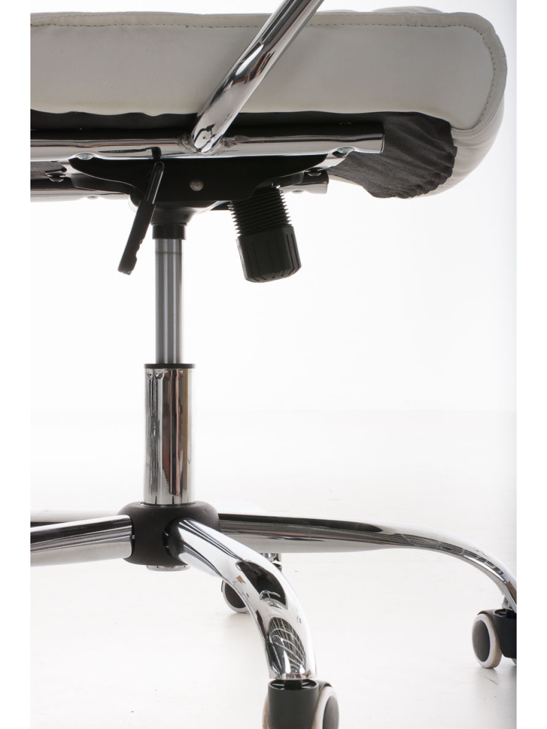 Sædehøjden er trinløst justerbar. Rammen er lavet af metal og meget stabil. Kontorstolen står sikkert på fem jævnt kørende hjul. Uanset om det er hårde eller tæppebelagte gulve - vil du altid kunne rulle let og løst hen over gulvet.
