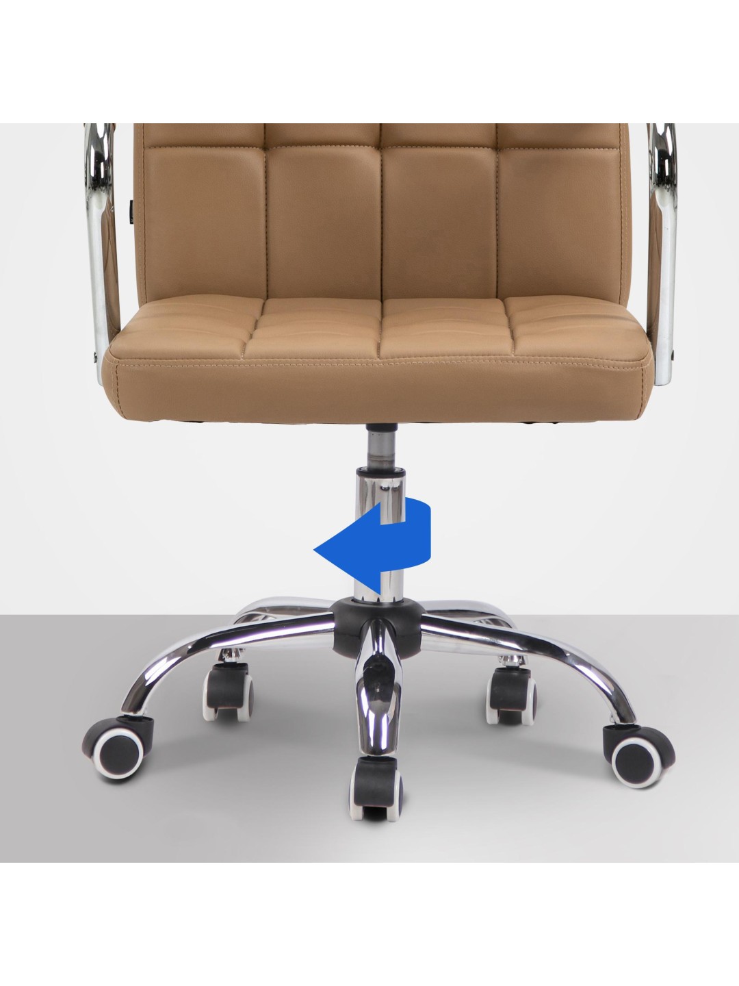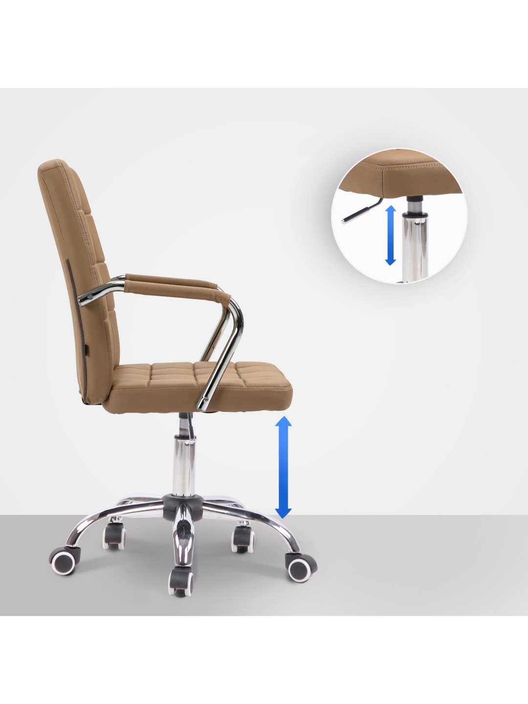Skrivebordsstolen er forsynet med polstring af høj kvalitet over sæde og ryglæn - enten lavet af kunstlæder eller stof. Det smukke quiltede mønster pryder møbelbetrækket.