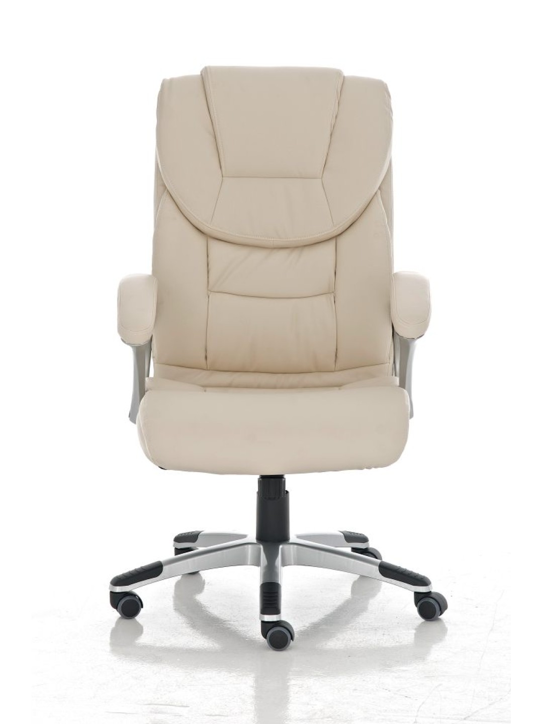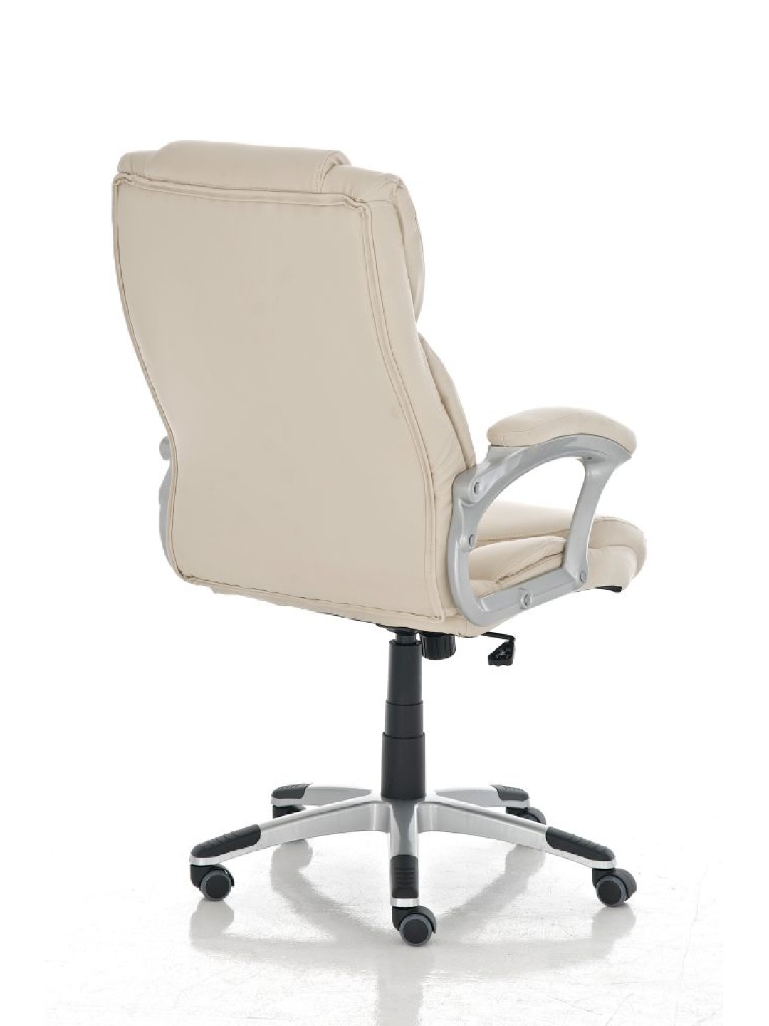 Denne stol lader intet tilbage at ønske, når det kommer til komfort, da det ergonomisk formede ryglæn og den trinløst justerbare sædehøjde garanterer en behagelig siddestilling. Bevægelsesfrihed er muliggjort af den indbyggede vippemekanisme. Den højkvalitets polstring og det plejevenlige kunstlæderbetræk imponerer også med deres lange levetid. Kontorstolen står sikkert på fem jævnt kørende hjul og en plastikramme i metallook. Uanset om det er hårdt eller tæppebelagt - du kan altid rulle let og løst hen over gulvet.