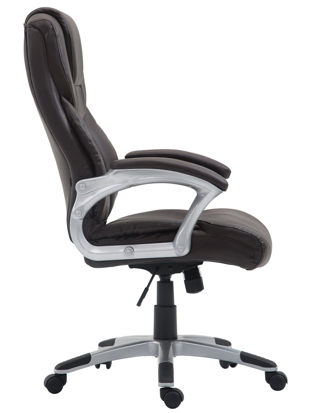Den højkvalitets udførelse af kontorstolen imponerer med en robust plastikramme i elegant grå, der passer harmonisk ind i ethvert miljø. Det bløde imiterede læderbetræk og det ergonomiske ryglæn lavet af koldskum garanterer en behagelig siddeoplevelse.