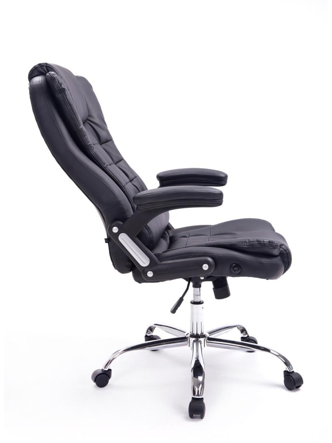 Thor direktørstolen er en eksklusiv kontorstol med polstring af meget høj kvalitet og betræk i kunstlæder. Kunstlæderbetræk har den fordel, at de er elastiske og vil strække sig jævnt igen, når belastningen aflastes. Dette ser ikke kun pænere ud, men forlænger også sædebetrækets levetid. Stellet er lavet af metal med krom look og er derfor meget stabilt. Takket være den justerbare sædehøjde er ergonomisk siddegaranti garanteret. Sædehøjden kan justeres trinløst med håndtaget under sædet. Den indbyggede vippemekanisme sikrer mere bevægelsesfrihed. Kontorstolen står sikkert på fem jævnt kørende hjul. Lige meget om det er hårde eller tæppebelagte gulve – du vil altid kunne rulle let og løst hen over gulvet.
