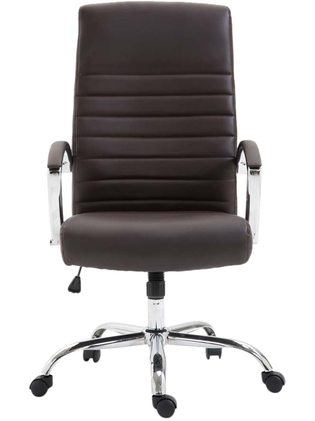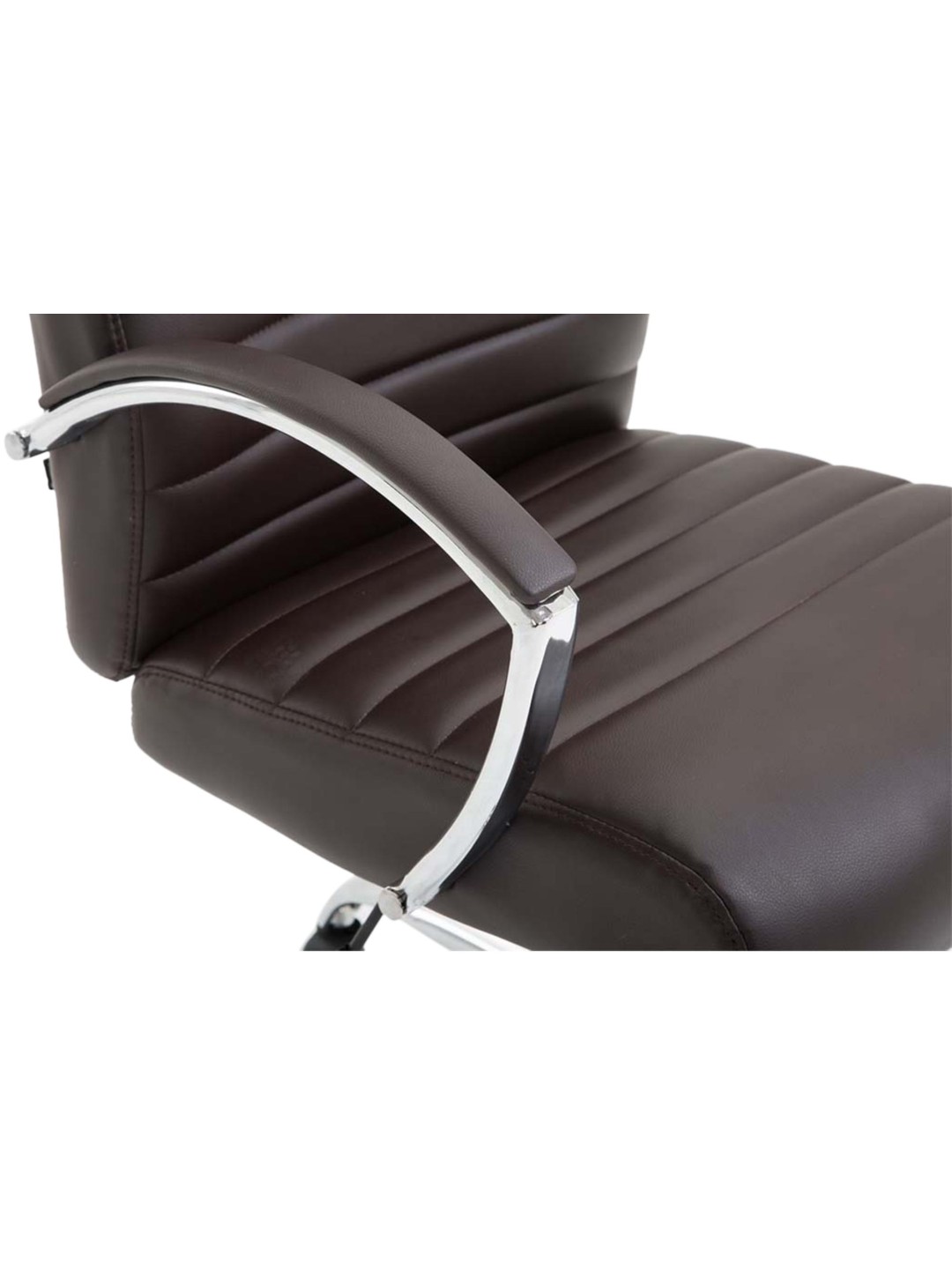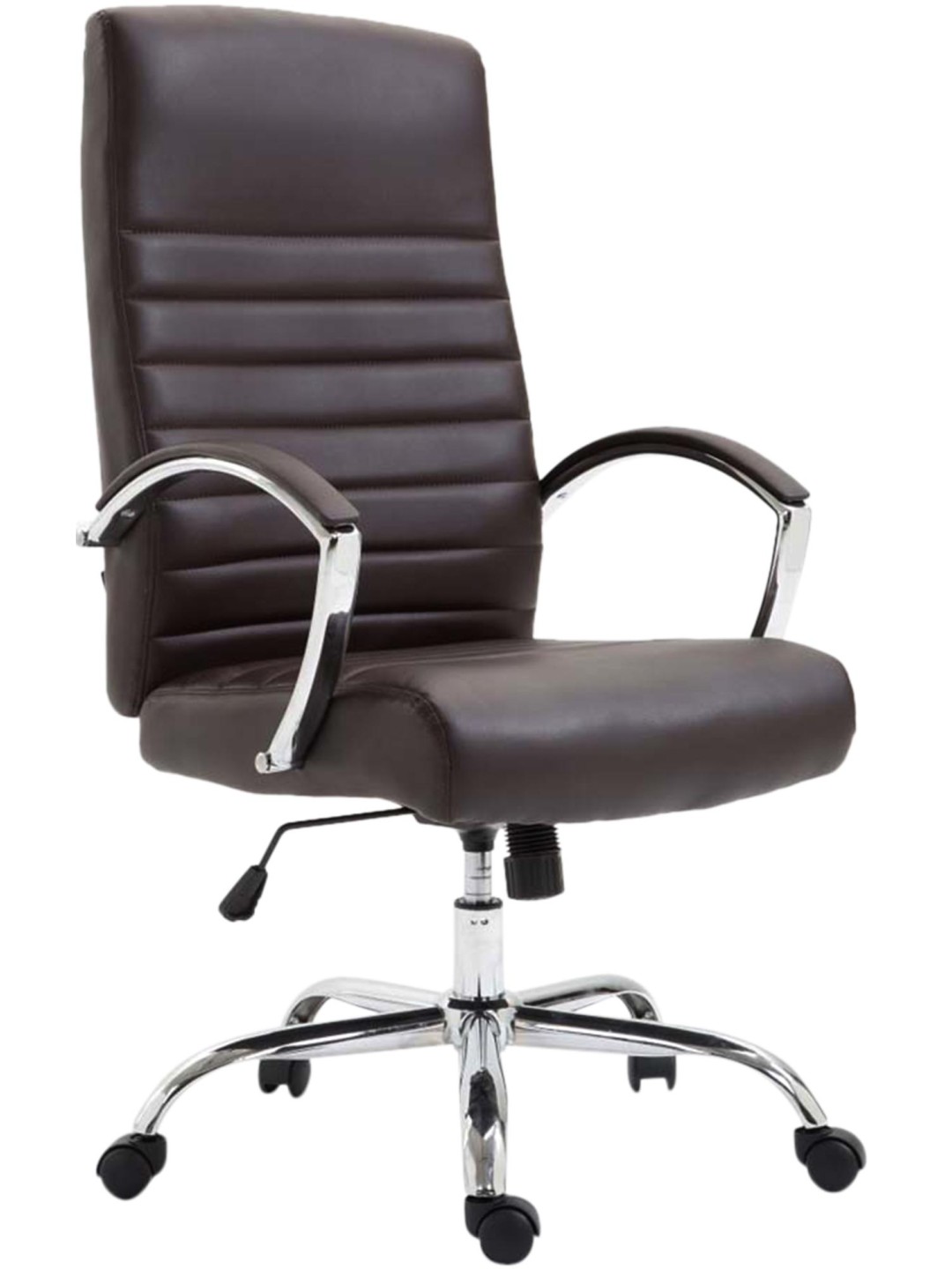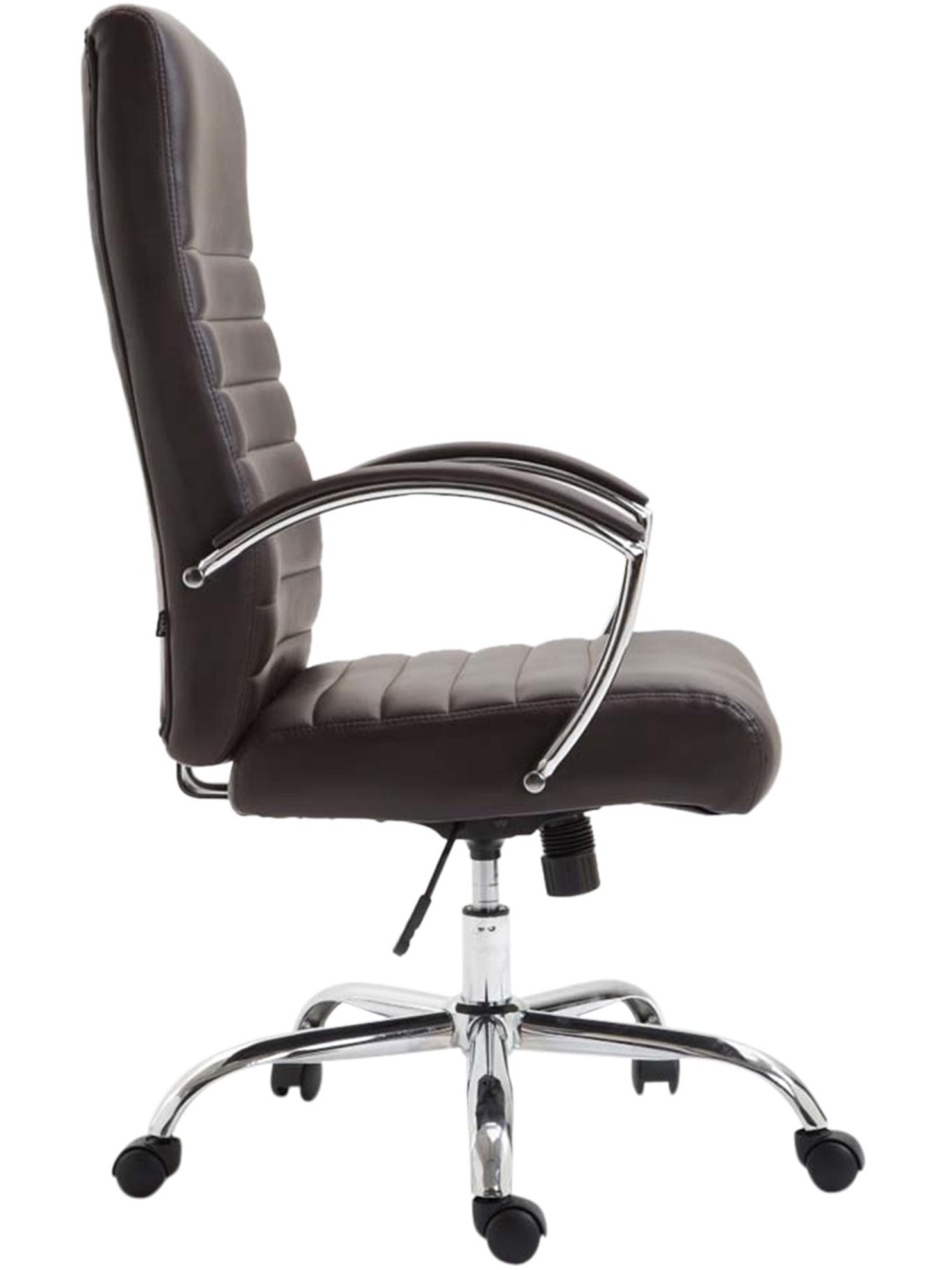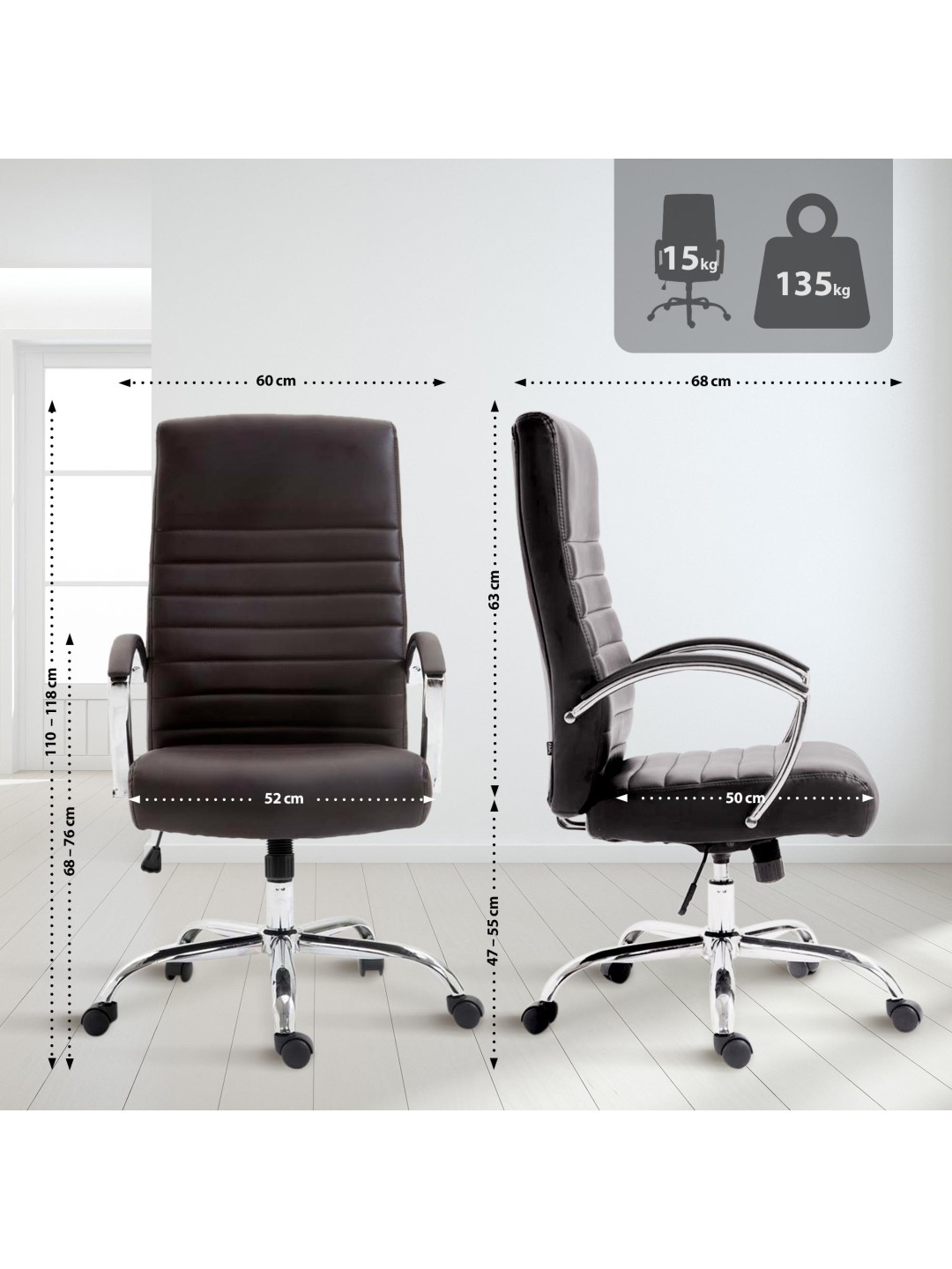 Lavet af højkvalitets imiteret læder, stolen i krom-look udstråler elegance og er også nem at passe. Den robuste drejestol, udstyret med letvægts plastikhjul, er designet til en belastning på op til 136 kg.