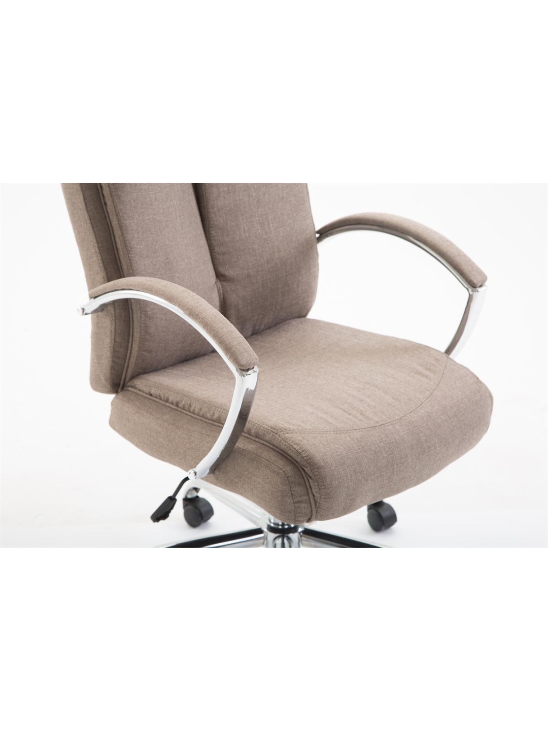 XL kontorstol Vaud er ideel til høje og tunge mennesker, da gastrykfjederen er designet til langtidsbrug op til 140 kg. Det er en kontorstol med polstring af høj kvalitet og stofbetræk. Sædehøjden kan justeres trinløst ved hjælp af håndtaget under sædet, hvilket garanterer en ergonomisk siddestilling. Den indbyggede vippemekanisme sikrer også mere bevægelsesfrihed. Kontorstolens stel er lavet af metal med krom look. Den står sikkert på fem robuste plasthjul. Lige meget om det er hårde eller tæppebelagte gulve - du vil altid kunne rulle let og løst hen over gulvet.