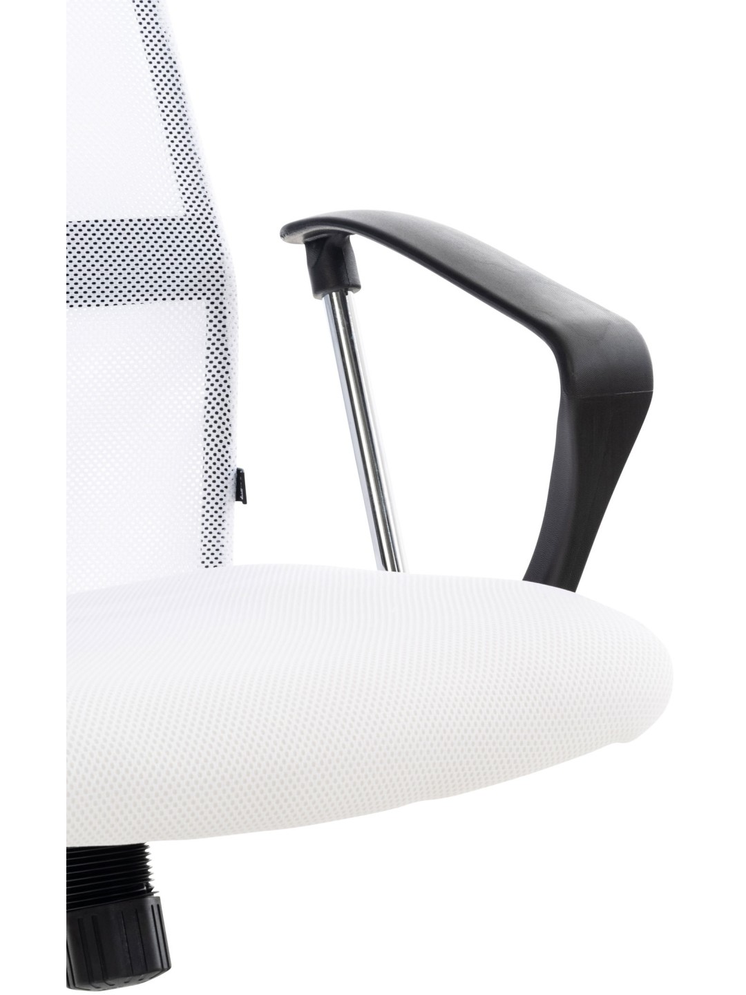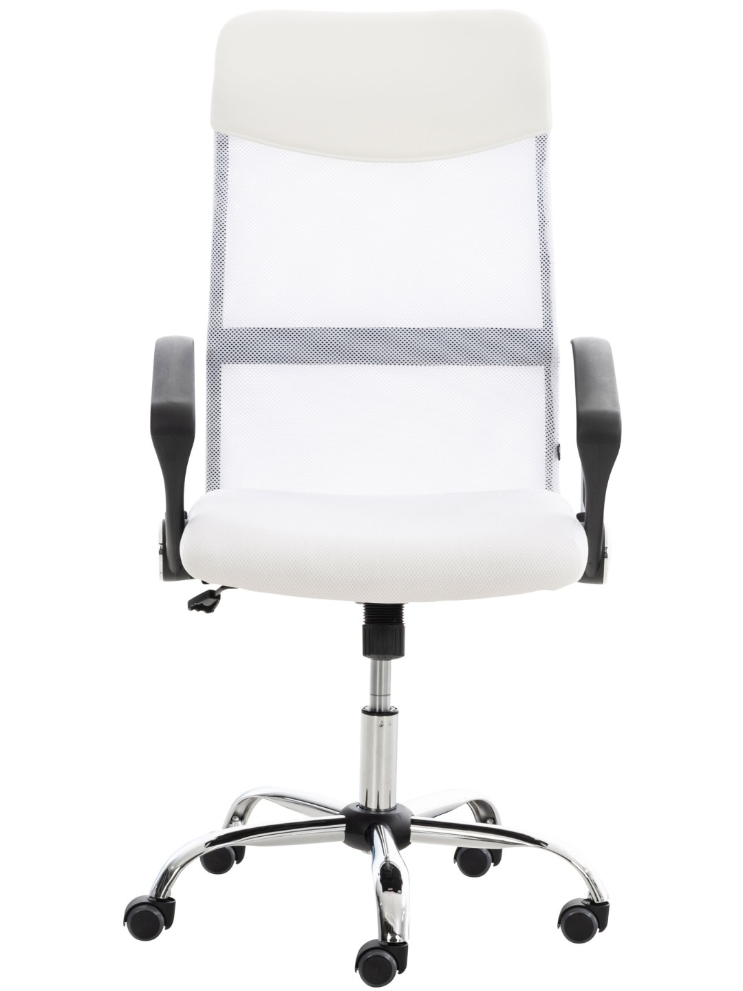 Denne højkvalitets kontorstol i et enkelt, elegant design er beklædt med et meshbetræk. Betrækket er åndbart, hvilket kan være en fordel, især ved høje temperaturer. Takket være den justerbare sædehøjde og de behageligt polstrede armlæn er ergonomisk sidde garanteret. Sædehøjden kan justeres trinløst med håndtaget under sædet. Metalrammen er forkromet og meget stabil, de fem robuste, jævnt kørende hjul sikrer yderligere stabilitet, som du altid kan rulle let og løst over både hårde og tæppebelagte gulve.