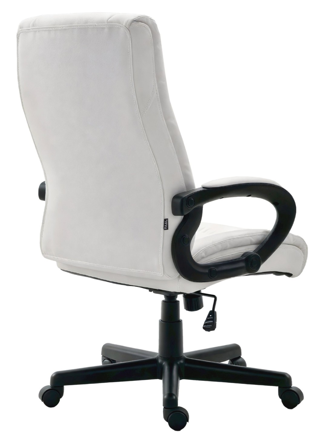 Det højkvalitets imiterede læderbetræk er ikke kun let at passe, men giver også drejestolen et elegant look. Polstrede armlæn og et behageligt hovedområde giver ekstra komfort. De støjsvage hjul glider jævnt hen over alle typer gulve - uden ridser eller støj. Dette holder din arbejdsplads rolig og dit gulv beskyttet.