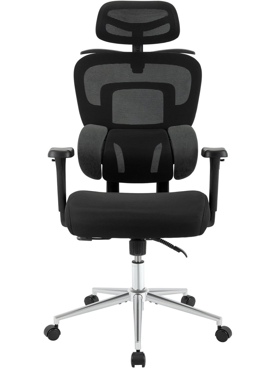 Et særligt højdepunkt er de 3D multifunktionelle armlæn, som kan justeres i højden, drejes og skubbes frem eller tilbage. Ryglænet kan vippes op til en vinkel på 135 grader, perfekt til korte pauser.