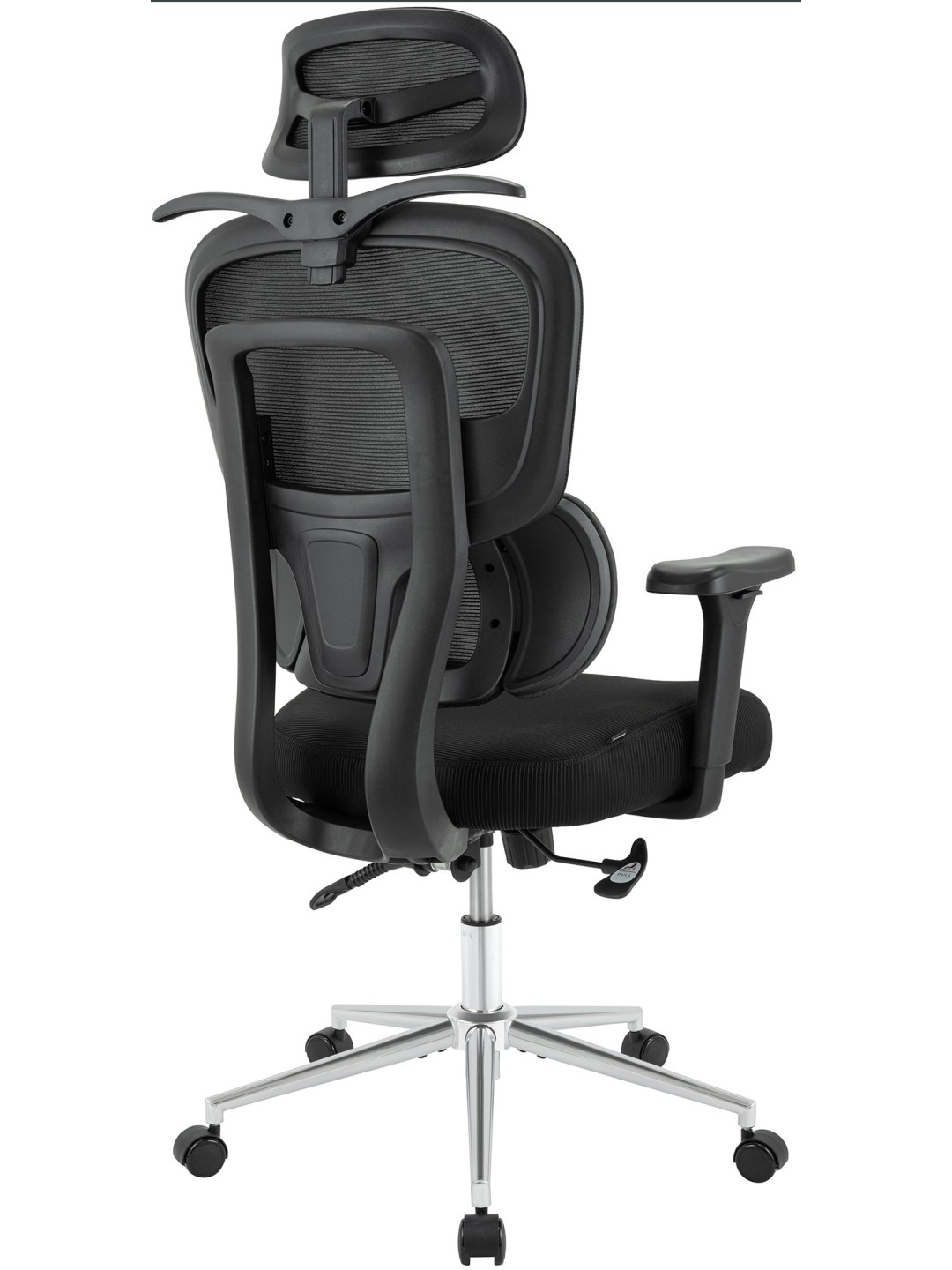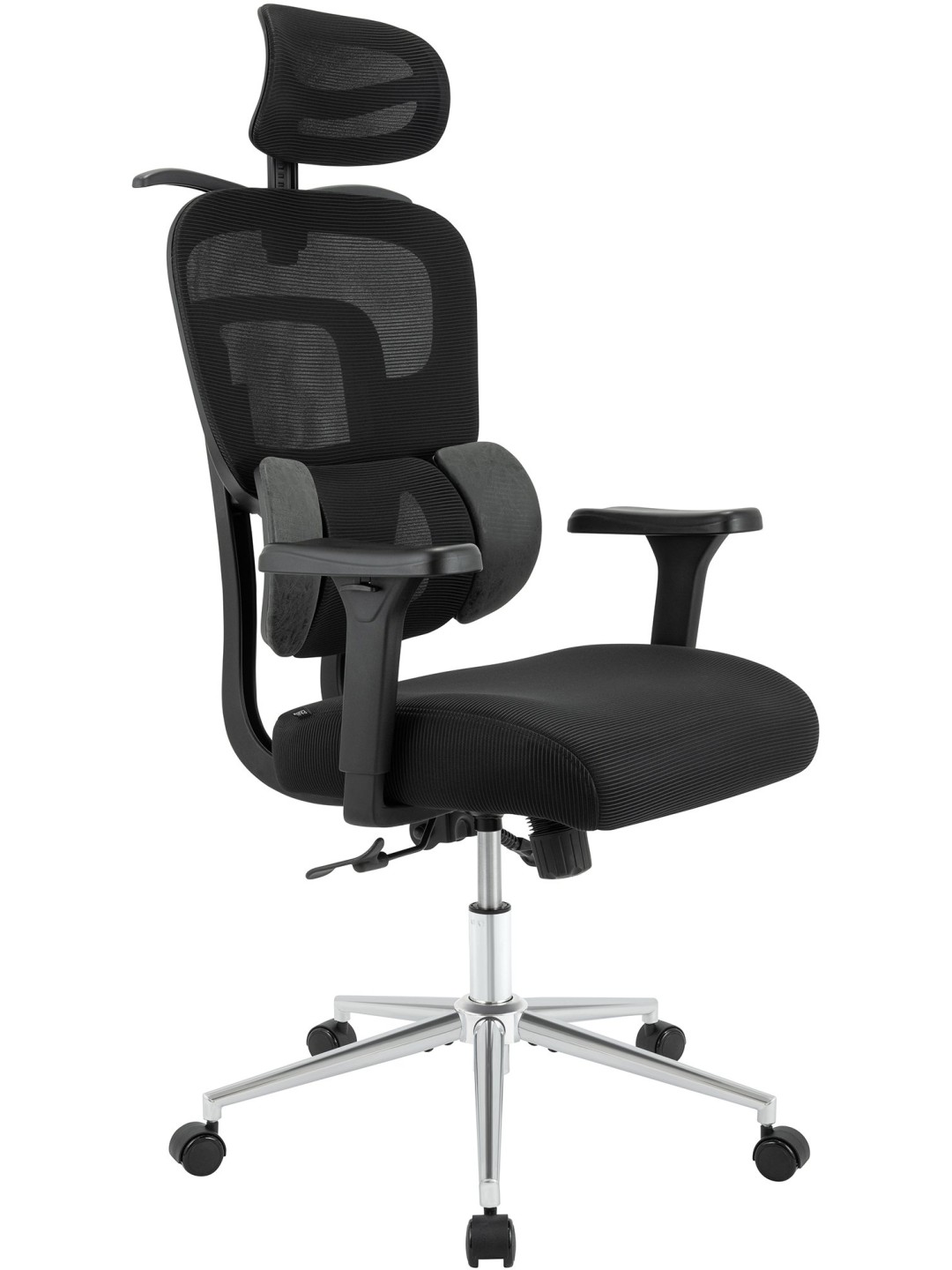 Den højdejusterbare nakkestøtte kan også vippes 45° og tilpasser sig dermed optimalt til enhver hovedform. Lændestøtten giver målrettet aflastning til den nedre rygsøjle.