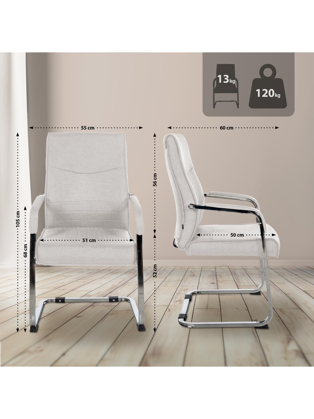 Den stabile udkragningsramme lavet af forkromet stål giver pålidelig stabilitet. Eventuelt sikrer letplejende kunstlæderbetræk eller slidstærkt stof et højkvalitetsudseende og behagelig fornemmelse. Gulvbeskyttere under løberne beskytter følsomme gulve og forbedrer grebet på glatte overflader. Hver stol kan holde op til 120 kg, hvilket gør den ideel til meget brugte møder og receptionsområder.
